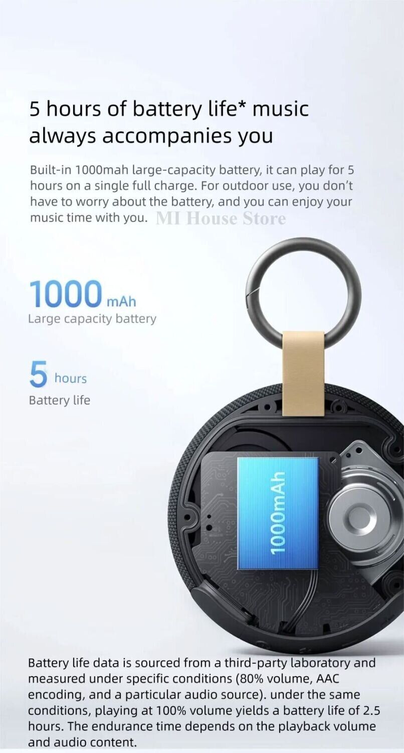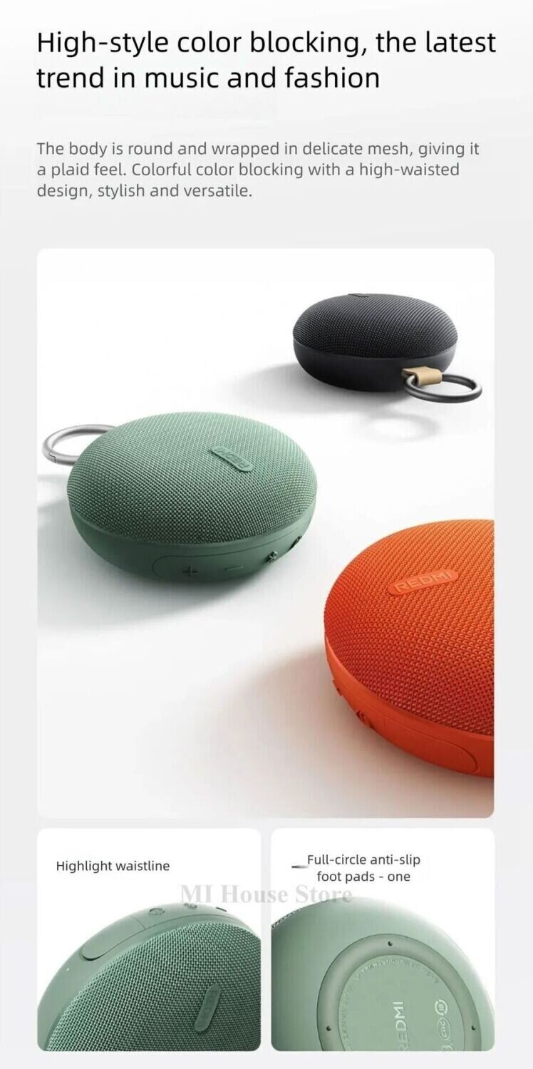 Портативная акустика Xiaomi Redmi Bluetooth Speaker 2 (QBH4327CN) — это стильная и компактная колонка, созданная для качественного воспроизведения музыки в любых условиях. Устройство выполнено в современном круглом корпусе с тканевой обивкой, которая не только придаёт эстетичный внешний вид, но и повышает устойчивость к повседневному износу. Металлический карабин позволяет удобно закрепить колонку на рюкзаке или сумке, делая её идеальным спутником в поездках и на прогулках. Встроенный динамик мощностью 5 Вт в сочетании с пассивным радиатором обеспечивает чистый, насыщенный звук с выраженными басами. Поддержка Bluetooth 5.3 гарантирует стабильное и быстрое подключение, а дополнительные возможности, такие как воспроизведение с microSD и зарядка через USB-C, расширяют функциональность устройства. Защита по стандарту IP67 позволяет использовать колонку на природе, не опасаясь пыли и влаги, а функция TWS даёт возможность объединить две колонки в стереосистему. Автономная работа до 5 часов делает устройство удобным для повседневного использования.