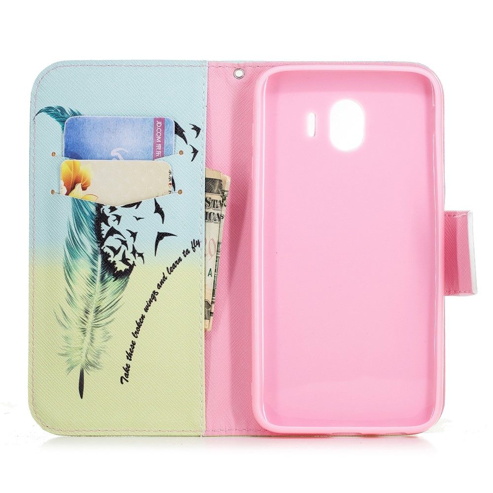 Чехол-книжка Deexe Color Wallet для Samsung Galaxy J4 2018 (J400) - Feather Pattern