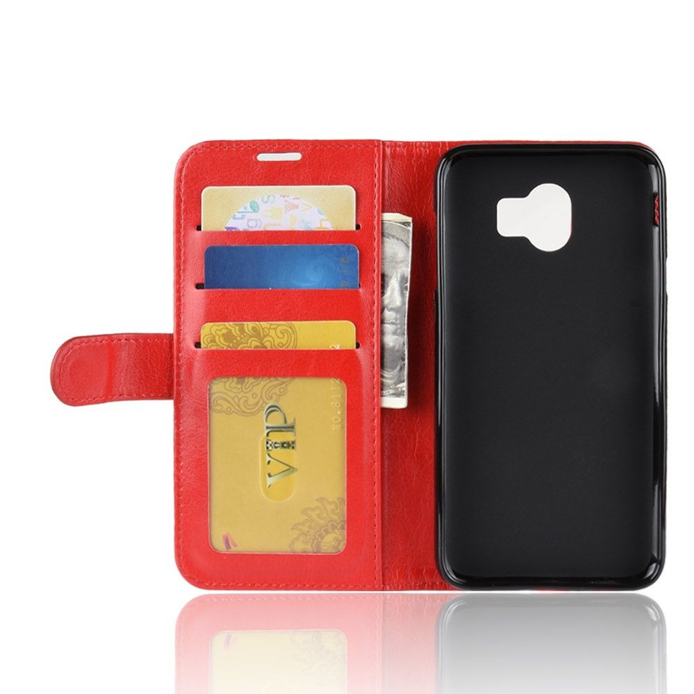 Чехол-книжка Deexe Wallet Style выполнен в полном соответствии с формой и размерами Samsung Galaxy J4 2018 (J400) и плотно на нём фиксируется, ограждая поверхности аппарата от загрязнений и повреждений. В качестве основного материала выступает синтетическая кожа, дополняет конструкцию полиуретановый (TPU) держатель, который фиксирует смартфон внутри и обеспечивает "противоударный" эффект