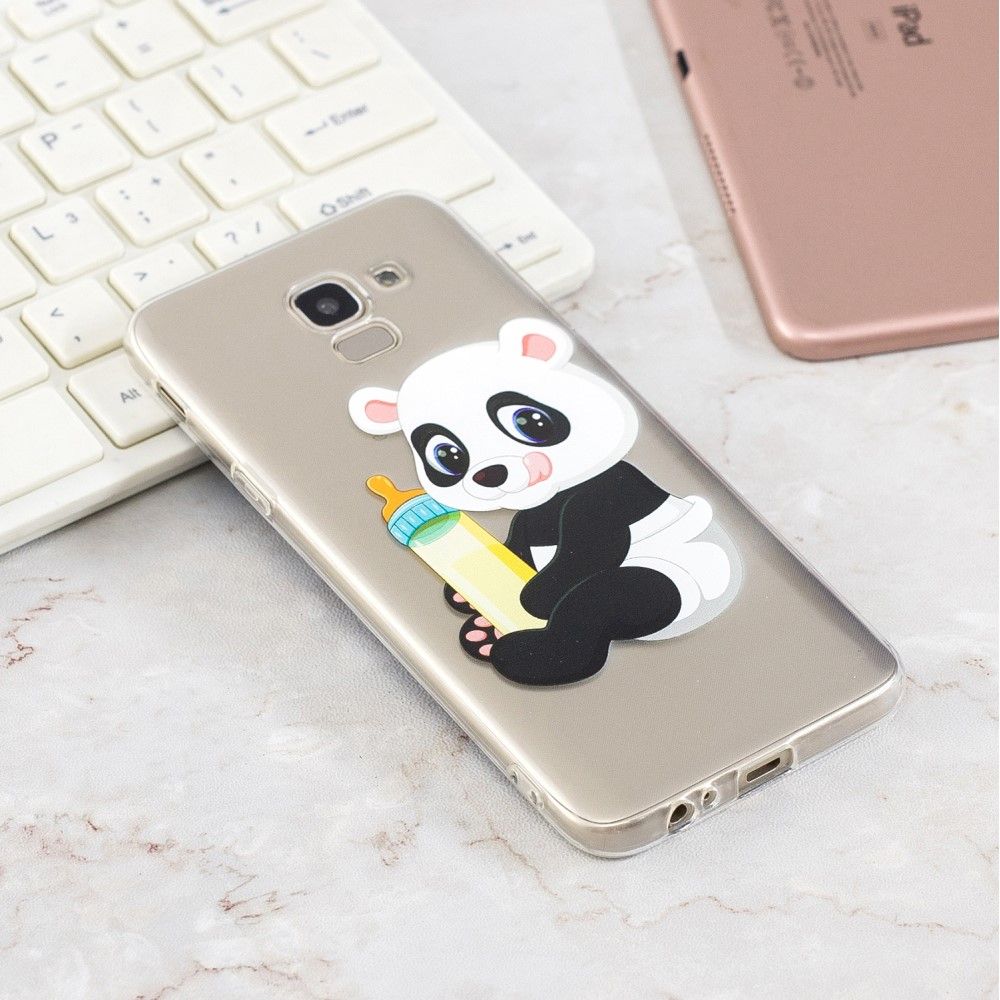 Силиконовый (TPU) чехол Deexe Pretty Glossy для Samsung Galaxy J6 2018 (J600) - Panda Holding a Bottle