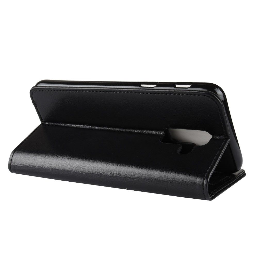 Чехол-книжка Deexe Wallet Style выполнен в полном соответствии с формой и размерами Samsung Galaxy J8 2018 (J810) и плотно на нём фиксируется, ограждая поверхности аппарата от загрязнений и повреждений. В качестве основного материала выступает синтетическая кожа, дополняет конструкцию полиуретановый (TPU) держатель, который фиксирует смартфон внутри и обеспечивает "противоударный" эффект