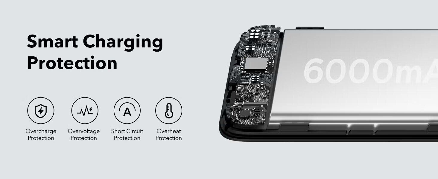 • Емкость аккумулятора 6000 мА·ч (22.2 Вт·ч) позволяет зарядить телефон более одного раза;