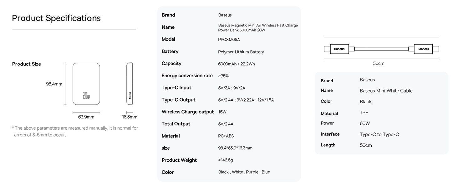 Особенности внешнего аккумулятора Baseus Magnetic Mini 20W (6000mAh):