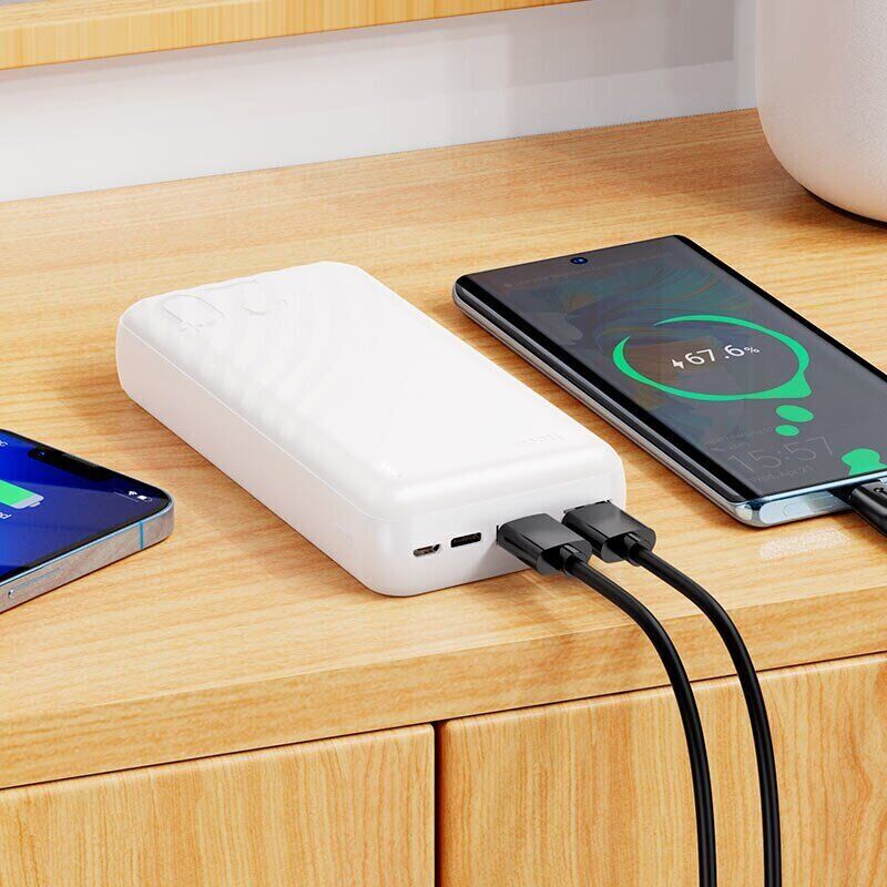 Внешний аккумулятор Hoco J123A 12W (20000mAh) — практичное устройство для тех, кто активно пользуется смартфоном, планшетом, беспроводными наушниками и другой портативной техникой и не хочет зависеть от розетки. Ёмкость 20000 мА·ч обеспечивает солидный запас энергии, позволяя несколько раз подзарядить устройства в дороге, на работе или в путешествии. Два выхода USB-A дают возможность заряжать сразу два гаджета одновременно — удобно, когда нужно подпитать телефон и, например, наушники или второй смартфон. Для зарядки самого аккумулятора предусмотрены входы USB-C и MicroUSB, поэтому можно использовать как современные, так и более привычные кабели. Корпус из огнеупорных материалов ABS и поликарбоната рассчитан на ежедневную эксплуатацию, а LED-индикаторы помогают быстро оценить остаток заряда.