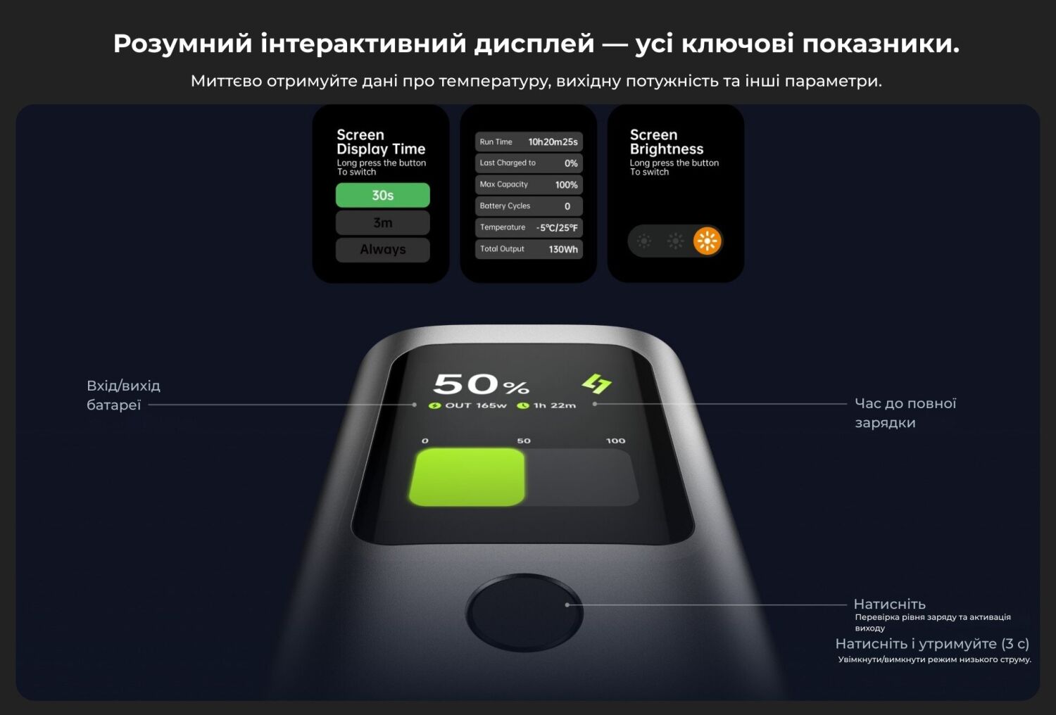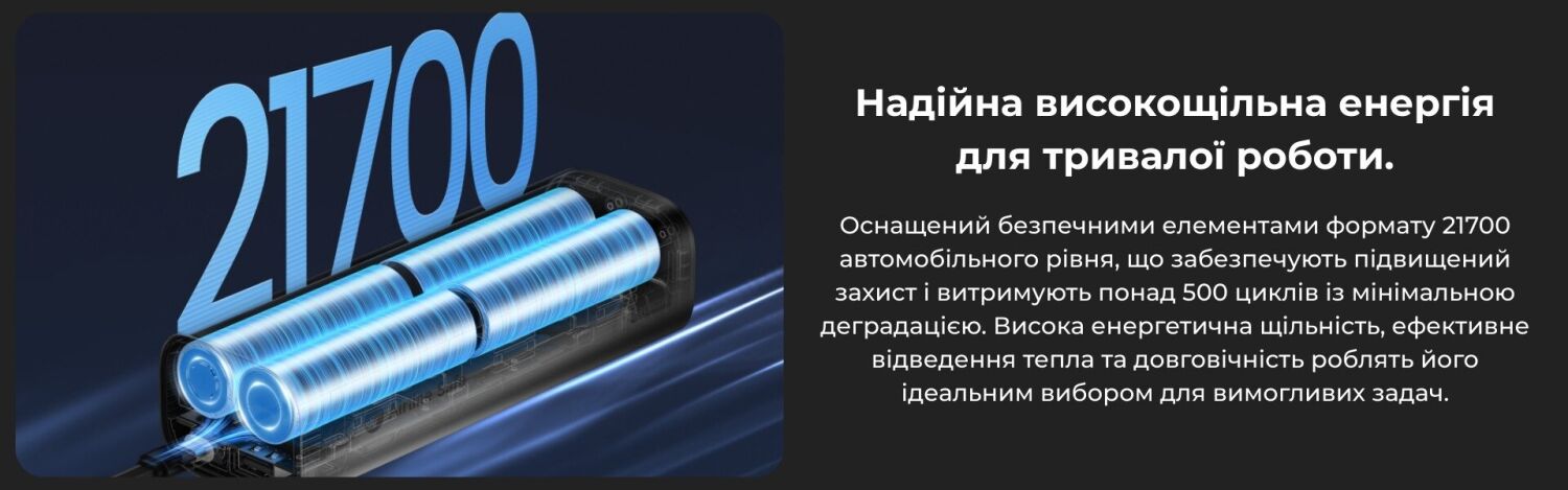 - Цифровой дисплей отображает уровень заряда и рабочие параметры, включая текущую мощность и состояние аккумулятора;