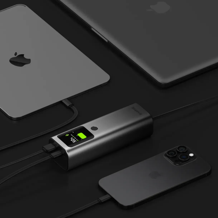 Внешний аккумулятор Sharge Retractable 165 165W (20000mAh) с кабелем Type-C выступает практичным решением для зарядки мобильных устройств в условиях отсутствия доступа к электросети. Емкость 20000 мАч обеспечивает возможность подзарядки смартфонов, планшетов, портативных игровых устройств и другой электроники, позволяя выполнять несколько циклов в зависимости от энергопотребления. Устройство оборудовано встроенным выдвижным кабелем Type-C, который аккуратно размещен в корпусе и исключает необходимость использования дополнительных проводов. Поддержка мощности до 165 Вт позволяет использовать аккумулятор для быстрой зарядки совместимых устройств с высоким энергопотреблением. Конструкция предусматривает наличие нескольких портов, что дает возможность подключать сразу несколько гаджетов без снижения стабильности работы. Корпус изготовлен из прочного пластика с продуманным расположением внутренних компонентов, что способствует эффективному отводу тепла при эксплуатации. Информационный дисплей отображает уровень заряда и текущие параметры питания, обеспечивая контроль за процессом работы. Компактный форм-фактор облегчает транспортировку аккумулятора в сумке или рюкзаке, не занимая много места.