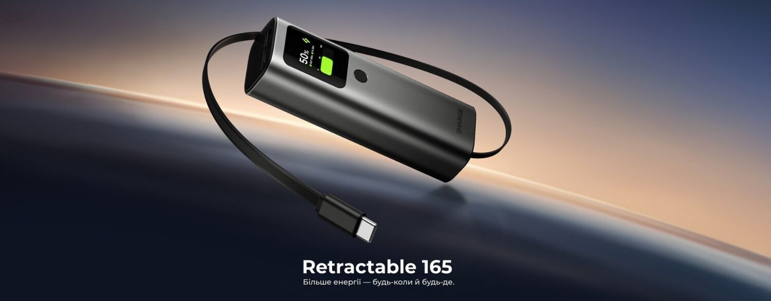 Особенности внешнего аккумулятора Sharge Retractable 165 165W (20000mAh) + кабель Type-C: