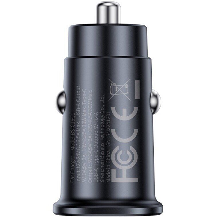 Особенности автомобильного зарядного устройства Baseus GoTrip DP1 BS-C15C1 (Type-C + USB) 30W (C00072300123-01):