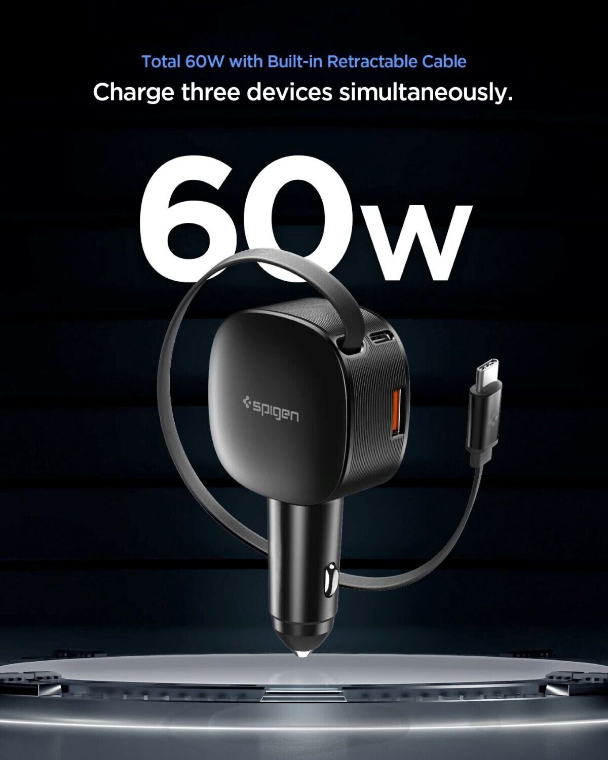 Автомобильное зарядное устройство Spigen Car Charger EV603BT (60W) ACP10515 — это компактный и функциональный адаптер для быстрой зарядки устройств в дороге. Он удобно устанавливается в разъём прикуривателя и остаётся устойчивым даже при движении по неровной дороге. Модель оснащена портами USB-C и USB-A, а также встроенным выдвижным кабелем, что позволяет одновременно заряжать несколько гаджетов без лишних проводов в салоне. Высокая выходная мощность обеспечивает стабильную подачу энергии, а система защиты помогает предотвратить перегрев, перегрузку и короткое замыкание. Практичное решение для ежедневных поездок и путешествий.