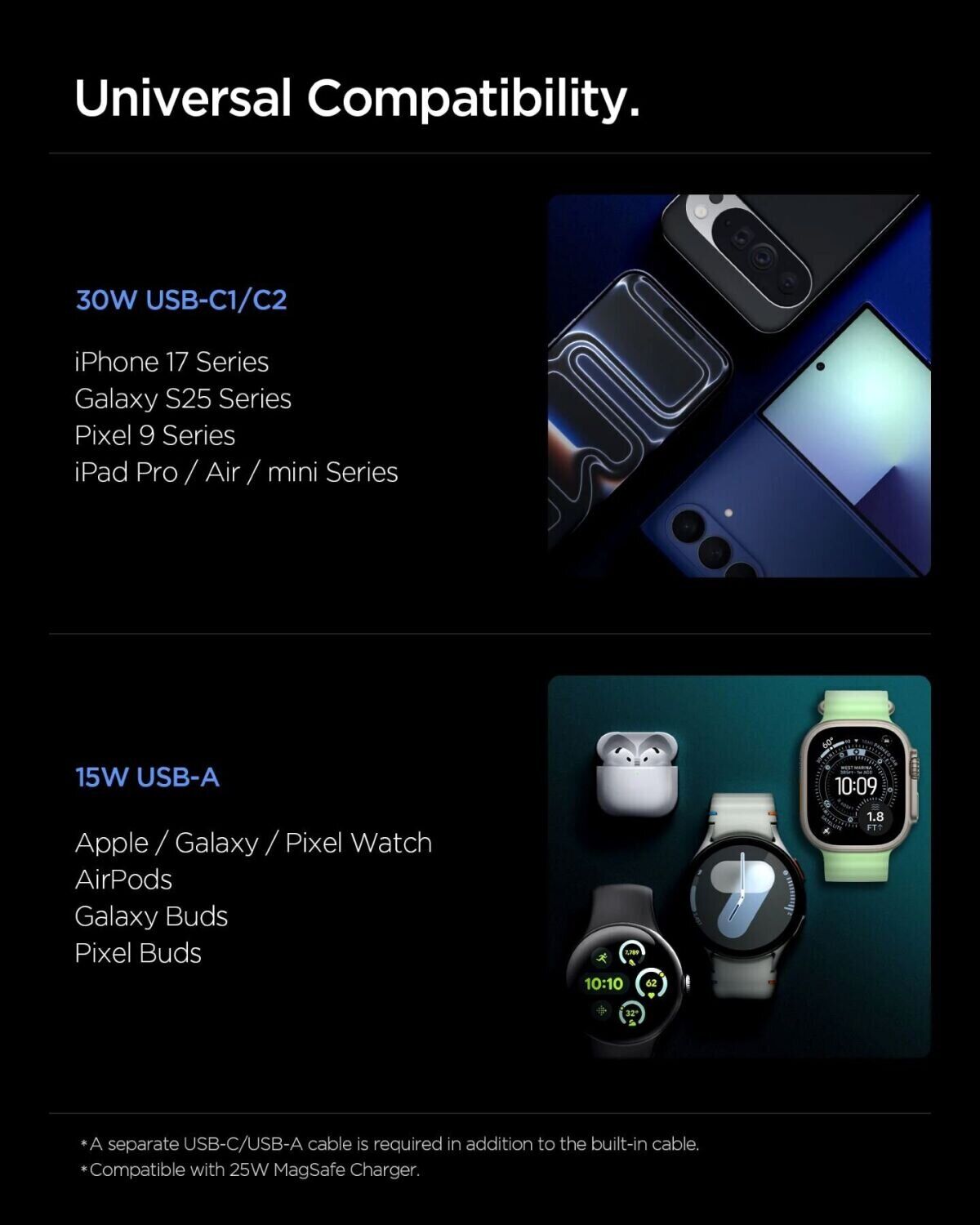 - Встроенный выдвижной кабель USB-C мощностью до 30 Вт (длина около 72 см);