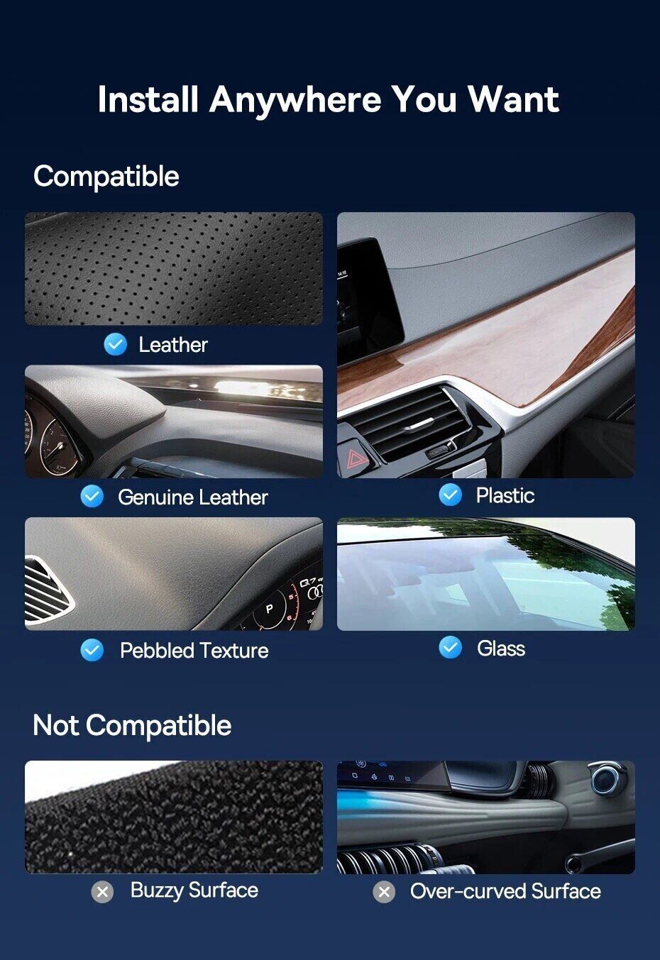 - Универсальное крепление на различные поверхности в салоне;