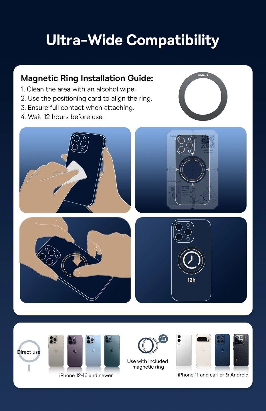 - Совместимость с магнитными устройствами и смартфонами с магнитным кольцом;