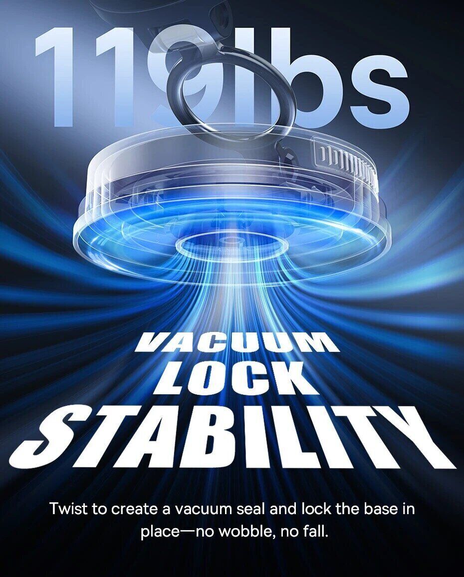 - Система Vacuum Lock для устойчивого крепления на стекле или панели;
