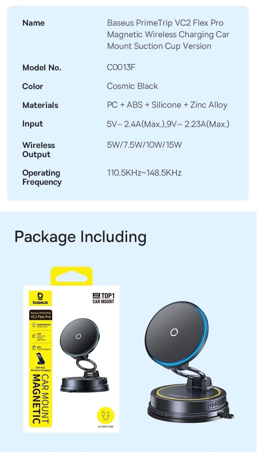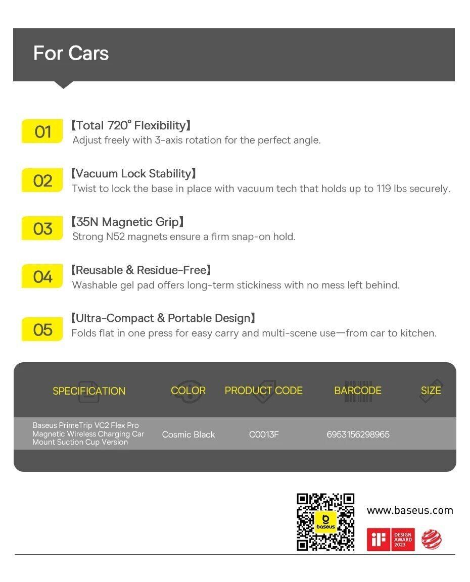 Особенности автомобильного держателя с функцией беспроводной зарядки Baseus PrimeTrip VC2 Flex Pro (C0013F01):