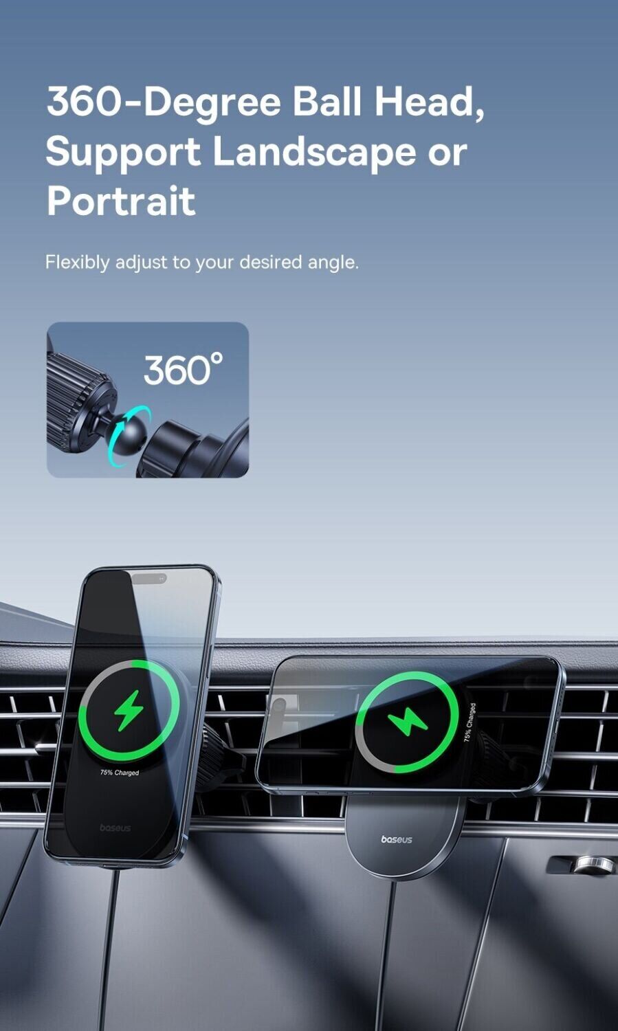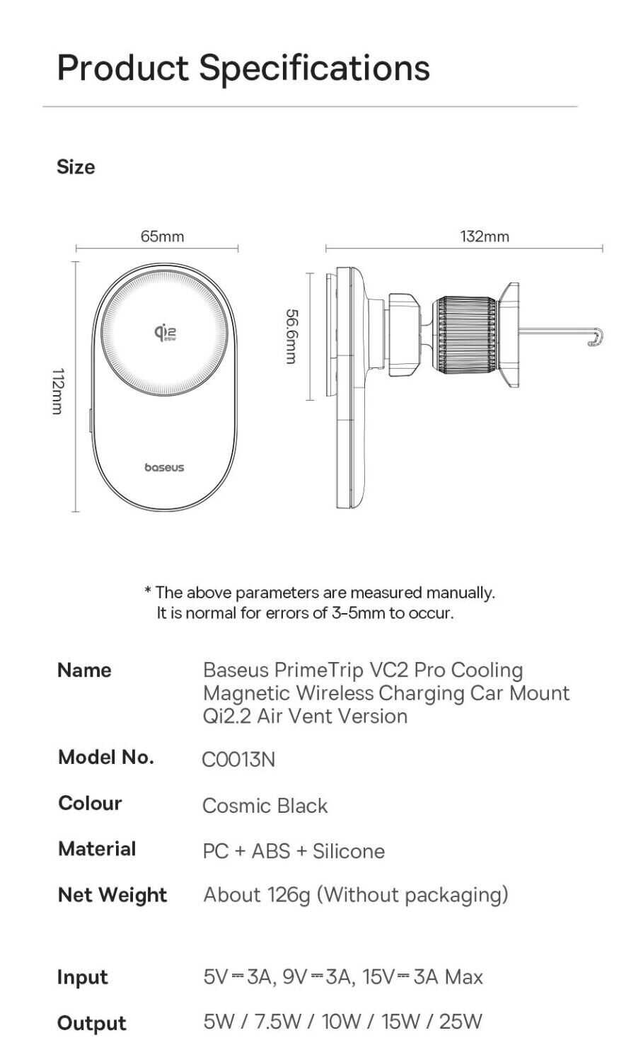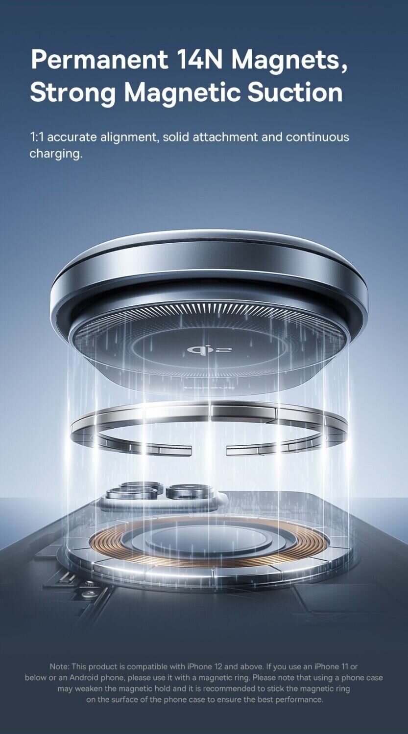 Автомобильный держатель с беспроводной зарядкой Baseus PrimeTrip VC2 Pro (C0013N00) — это функциональный аксессуар, который объединяет магнитное крепление и быструю зарядку для удобного использования смартфона в дороге. Поддержка стандарта Qi2 с мощностью до 25 Вт позволяет эффективно заряжать устройство во время поездок без подключения кабелей. Сильные магниты обеспечивают стабильную фиксацию смартфона, снижая риск смещения даже на неровной дороге. Встроенная система охлаждения с вентилятором помогает поддерживать стабильную работу и уменьшает нагрев при длительной зарядке. Крепление на вентиляционную решётку обеспечивает надёжную установку, а поворотный шарнир на 360° позволяет легко выбрать удобный угол обзора.