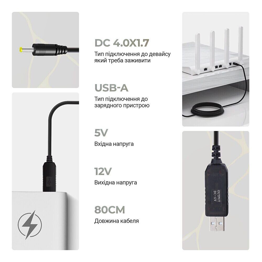 Кабель ArmorStandart USB to DC 4.0x1.7 мм (12V, 0.8m) — это универсальный адаптер питания, разработанный для стабильной работы Wi-Fi роутеров, ONU (GPON) терминалов и другой техники при отсутствии электричества. Благодаря встроенной плате повышения напряжения кабель преобразует стандартные 5 В от USB-порта в 12 В, что позволяет подключать оборудование напрямую к обычному павербанку. Такое решение обеспечивает бесперебойное питание устройств без необходимости использовать розетку, что особенно удобно дома, на даче или в поездках. Длина 0,8 метра делает кабель компактным и удобным, а высокая совместимость гарантирует лёгкое подключение без лишних настроек.