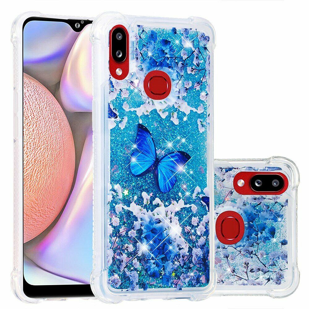 Силиконовая (TPU) накладка Deexe Fashion Glitter для Samsung Galaxy A10s (A107) - Blue Butterfly