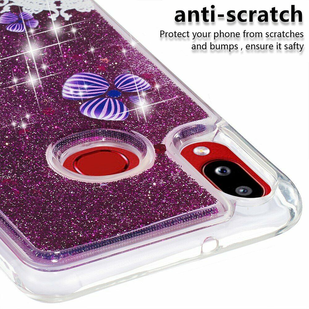 Силиконовая (TPU) накладка Deexe Fashion Glitter для Samsung Galaxy A10s (A107) - Purple/Butterfly and Flowers