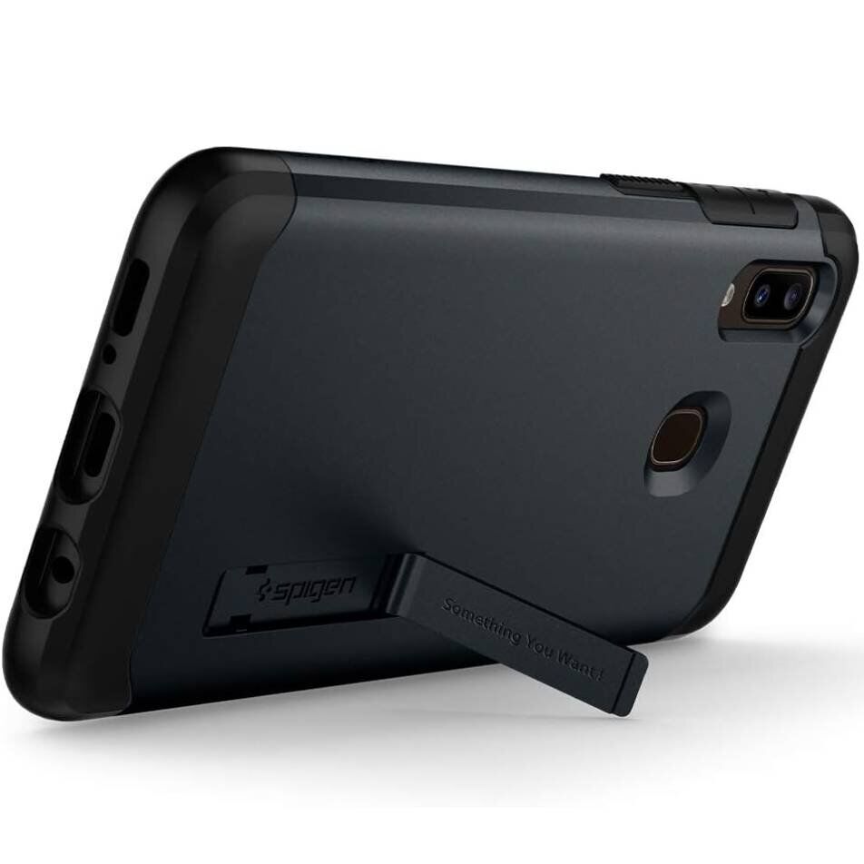 Spigen (SGP) Slim Armor – это противоударный чехол, разработанный для максимальной защиты Samsung Galaxy A30 (A305) от царапин, потертостей и даже возможных трещин при падениях. Его двусоставная конструкция включает эластичную силиконовую основу (TPU), которая поглощает удары, и жёсткий поликарбонатный панцирь, усиливающий защиту корпуса. Такое сочетание материалов разной жёсткости эффективно минимизирует последствия падений, снижая риск повреждений. Дополнительное преимущество Slim Armor – откидная подставка на спинке, которая позволяет зафиксировать смартфон под удобным углом для просмотра видео, чтения или видеозвонков. Прочная конструкция гарантирует устойчивость, а при ненадобности подставка легко складывается, не создавая лишнего объёма.