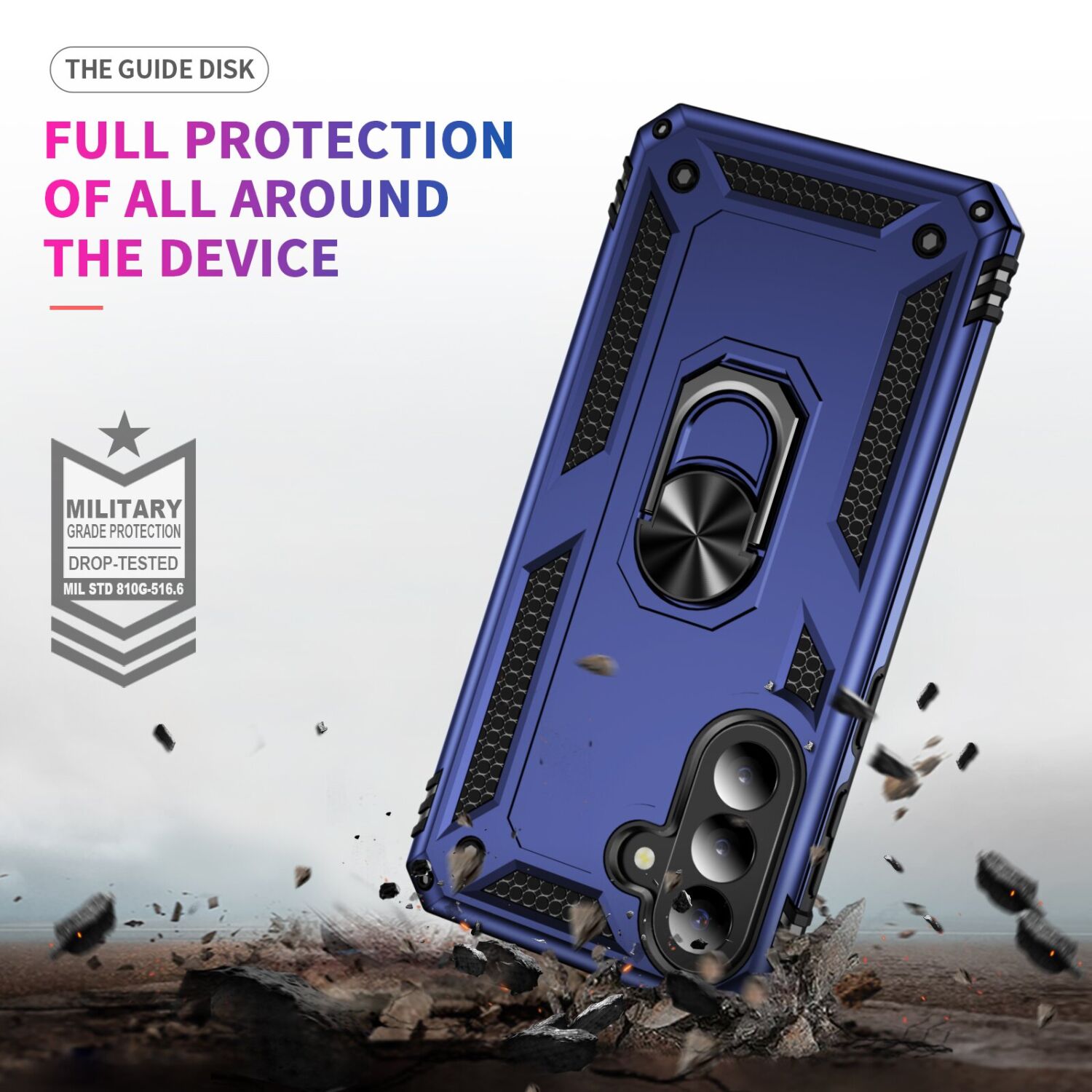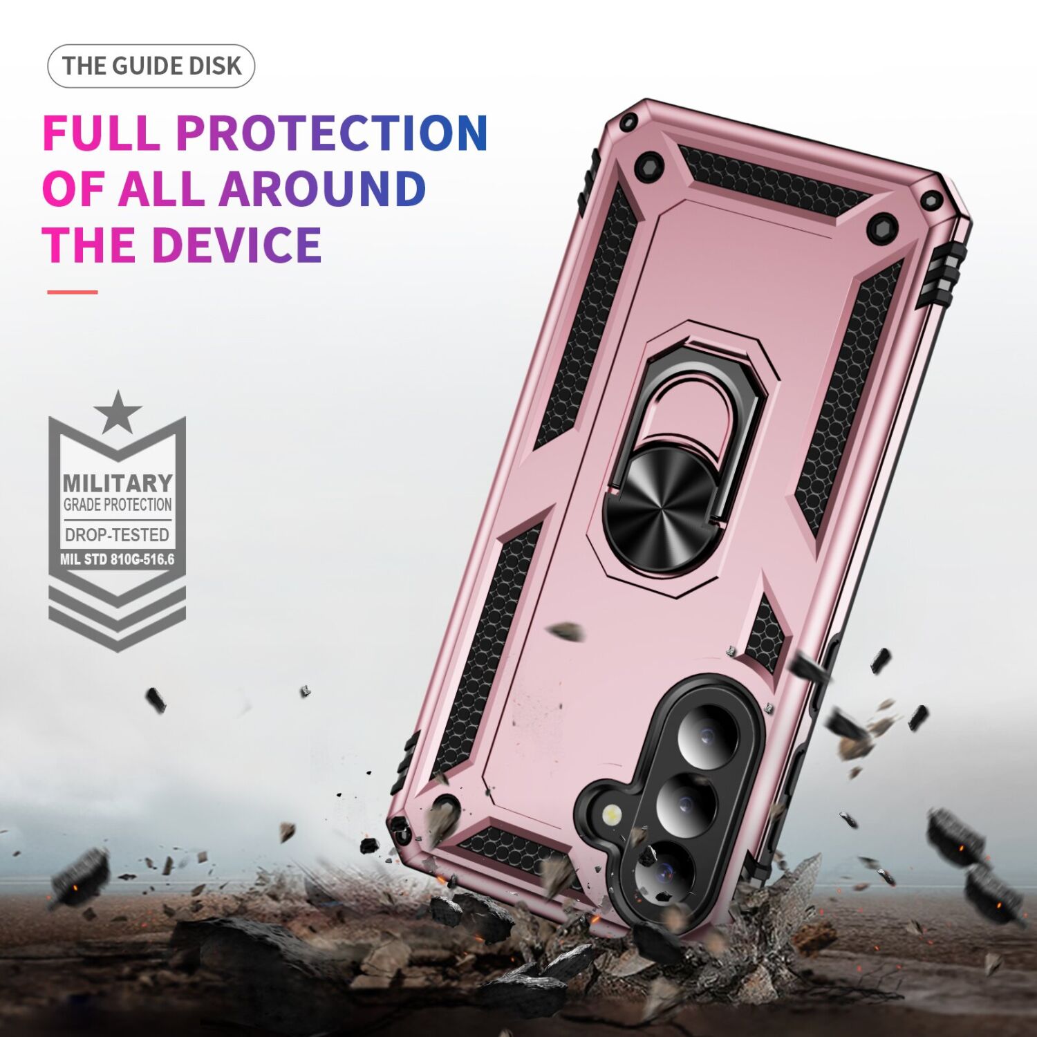 Deexe Armor Case – это прочный и надёжный защитный чехол, который обеспечит максимальную защиту Samsung Galaxy A57 (A576) при ежедневном использовании. Двухслойная конструкция из гибкого TPU и жёсткого поликарбоната делает аксессуар устойчивым к ударам, снижая риск появления трещин и сколов при случайных падениях. Чехол плотно облегает корпус, не перекрывая доступ к камере и разъёмам. Мягкие накладки на кнопки защищают их от пыли и влаги, сохраняя чувствительность нажатий. Металлическое кольцо-подставка на спинке выполняет сразу несколько функций: служит опорой для удобного просмотра видео, позволяет зафиксировать смартфон на магнитном автомобильном держателе, а также обеспечивает удобное удерживание на пальце. Кольцо можно компактно сложить в специальную нишу, благодаря чему оно не будет мешать при обычном использовании устройства.