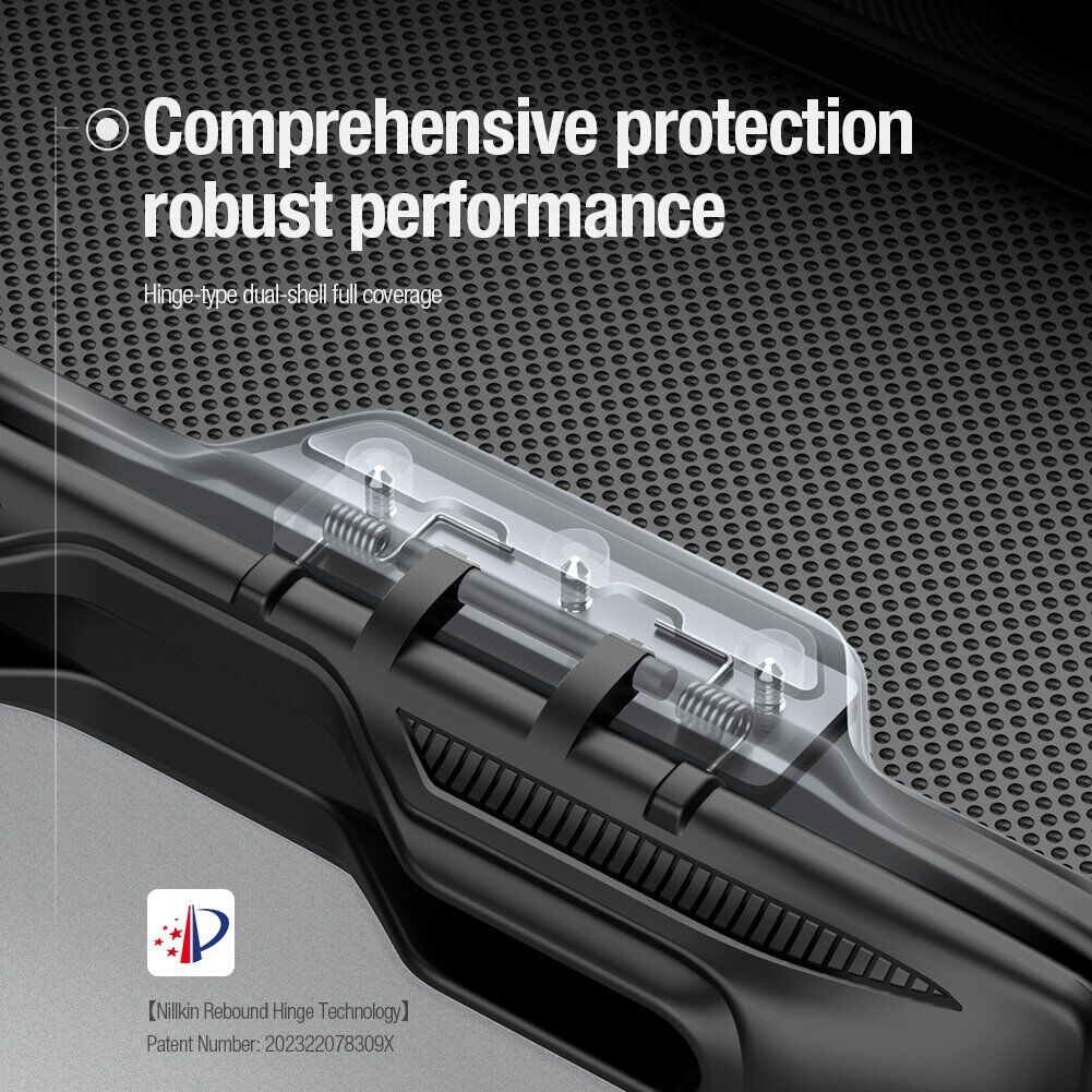 Пластиковый корпус NILLKIN Frosted Shield Pro (FF) для Samsung Galaxy Fold 6 разработан с учётом особенностей складного форм-фактора и сочетает прочный поликарбонат с аккуратной матовой отделкой. Конструкция сохраняет возможность свободного раскрытия устройства на угол до 180°, не ограничивая функционал. Поверхность с классической точечной текстурой устойчива к появлению следов от пальцев и выглядит сдержанно, подчеркивая минималистичный стиль. Жёсткий корпус эффективно снижает риск повреждений от повседневных ударов и случайных падений, сохраняя внешний вид смартфона в исходном состоянии. Встроенная металлическая рамка вокруг блока камер обеспечивает дополнительную стойкость к механическому воздействию и придаёт завершённый аккуратный вид. Чехол выполнен с точным соблюдением геометрии корпуса устройства, что позволяет пользоваться всеми кнопками, портами и элементами управления без препятствий.