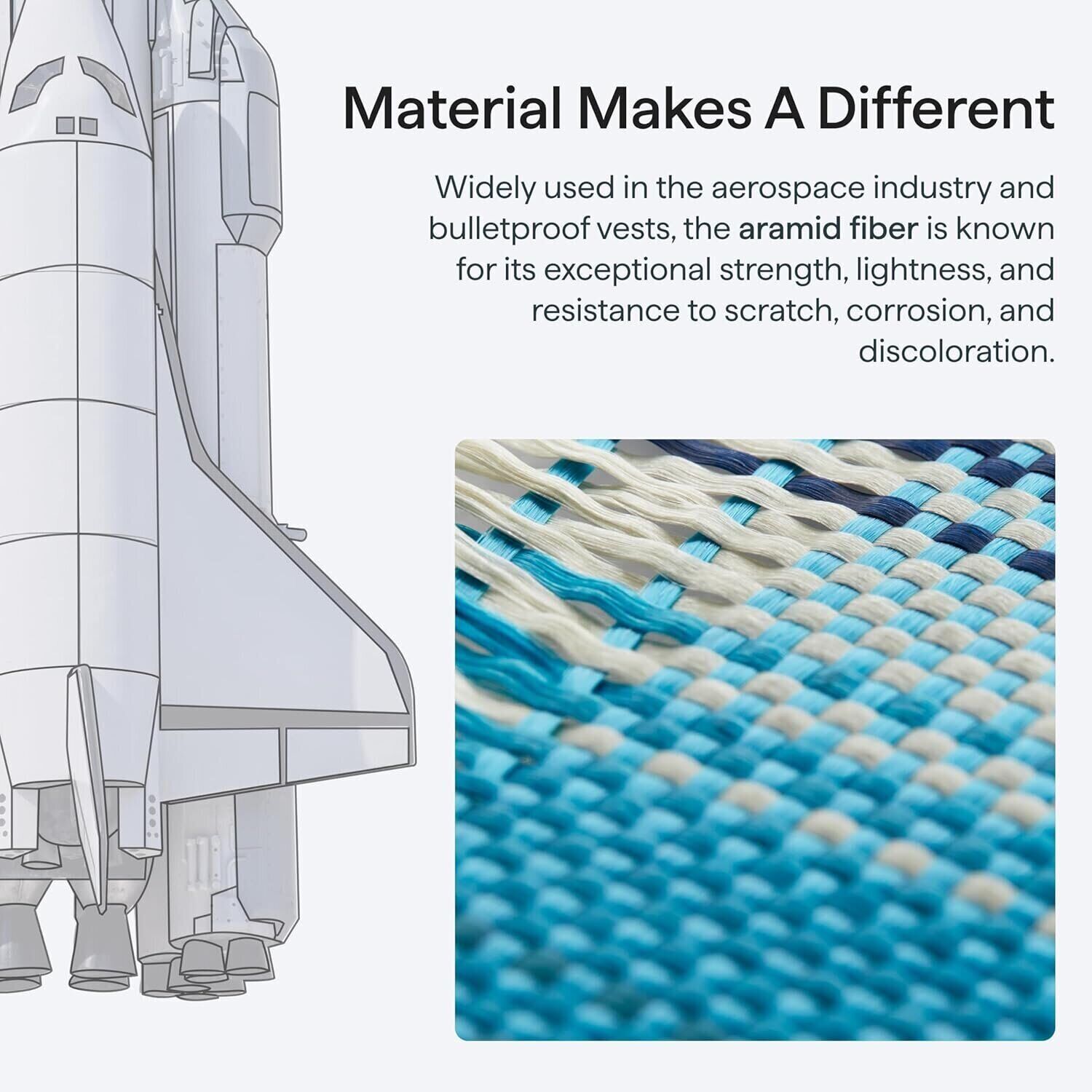 • Премиальное арамидное волокно обеспечивает прочность, легкость и стильный внешний вид;