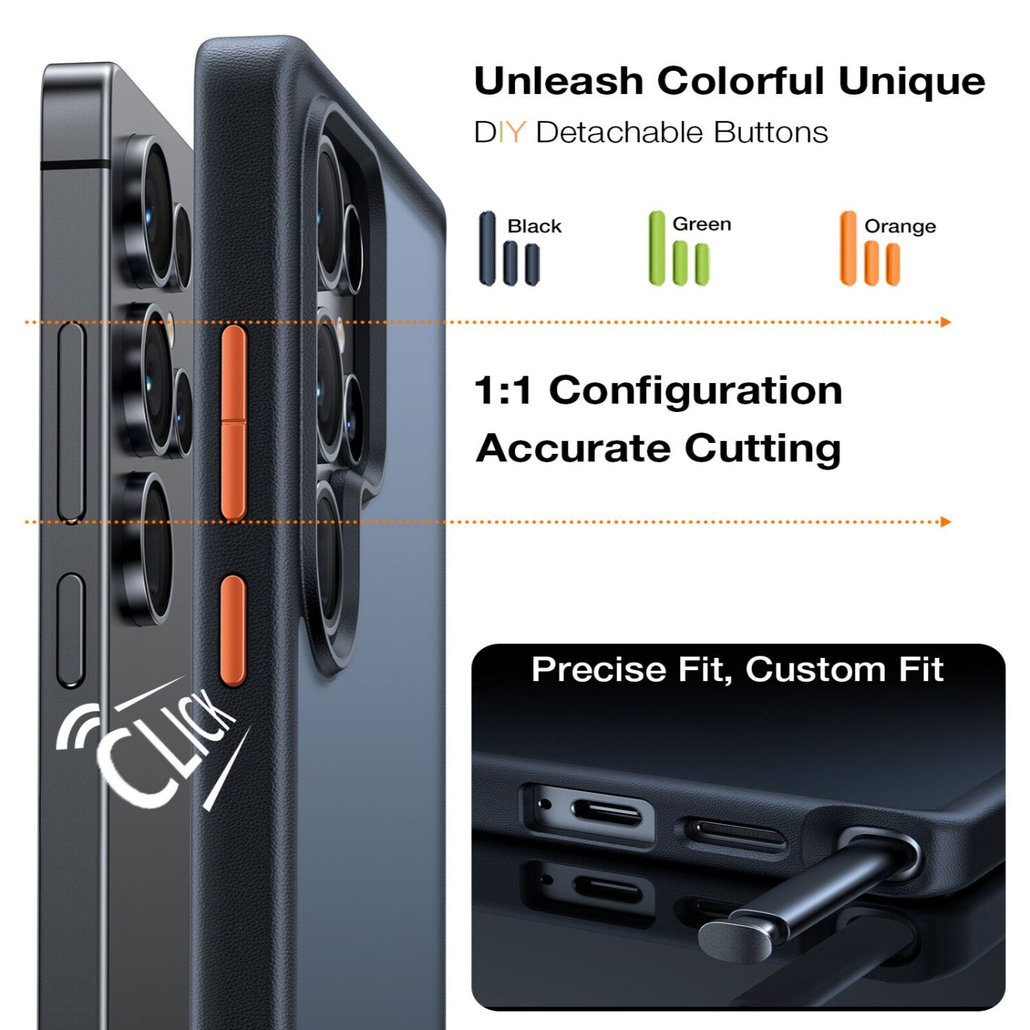 • Сменные накладки на боковые клавиши, входящие в комплект, дают возможность изменить визуальные детали без замены чехла;