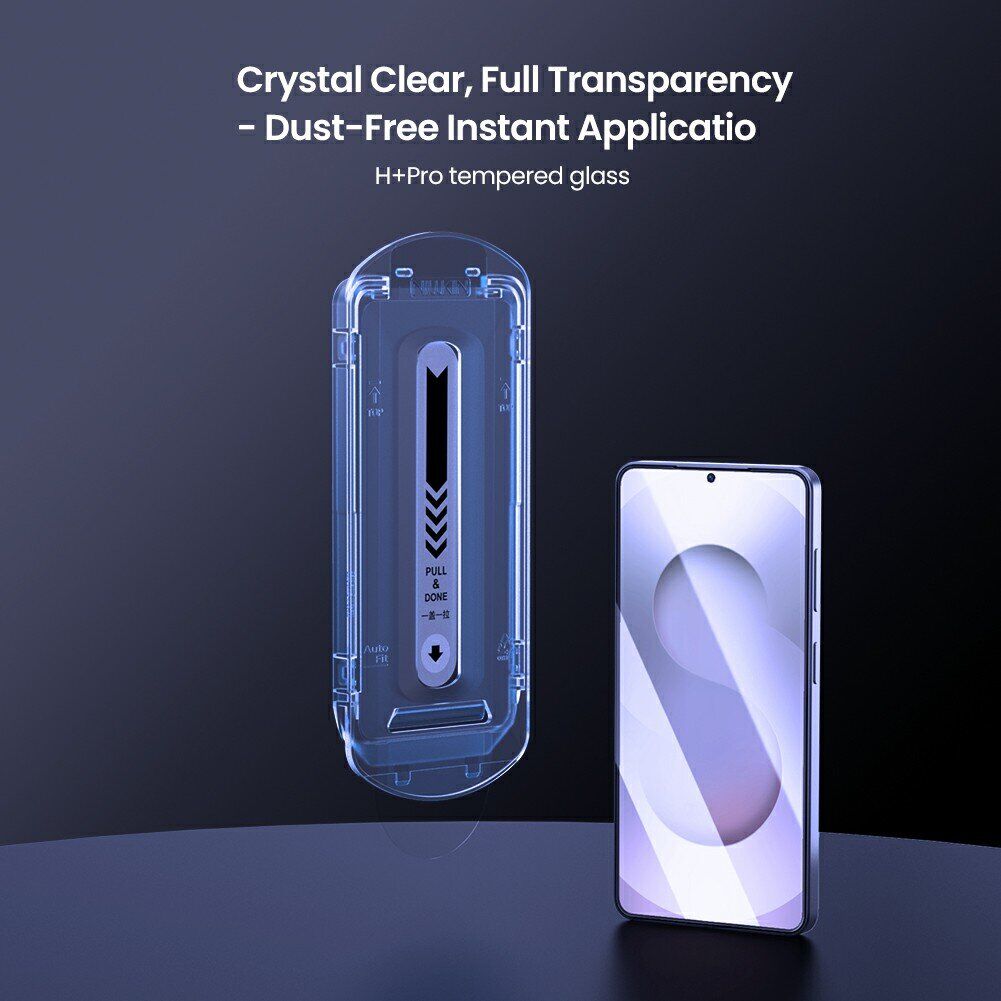 Стекло H+ Pro AR от копании Nillkin – это простое но невероятно эффективное решение для защиты лицевой поверхности Samsung Galaxy S26 как от грязи и царапин, так и более серьезных угроз – ударов, сколов и трещин. Твердость материала в его основе достигает 9H по шкале Мооса, обеспечивая высочайшую стойкость к механическому воздействию. Наличие олеофобного слоя препятствует скоплению отпечатков на поверхности, а также упрощает ее очистку. Само стекло при этом исключительно тонкое и прозрачное – не снижает чувствительность экрана и не ухудшает качество изображения. В комплекте с ним также идет специальная инсталляционная рамка, которая сделает процесс установки максимально быстрым и простым.