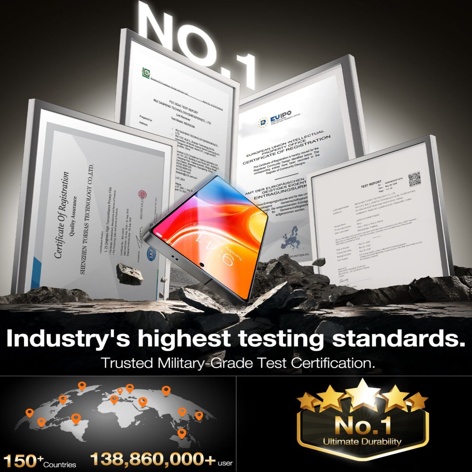 - Изготовлено из закалённого материала с твёрдостью 9H, созданного с использованием технологий, применяемых в аэрокосмической отрасли для повышения уровня защиты;