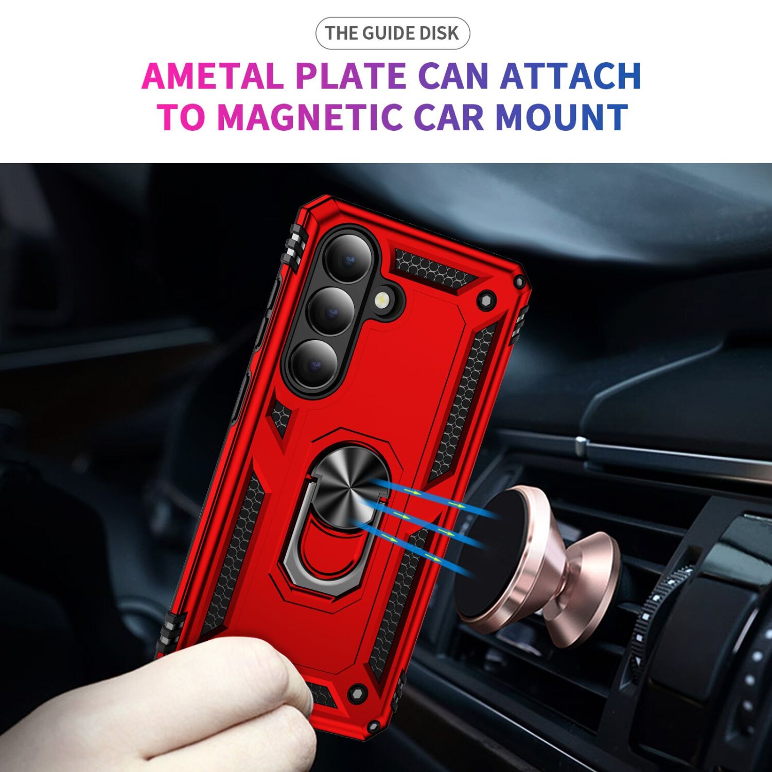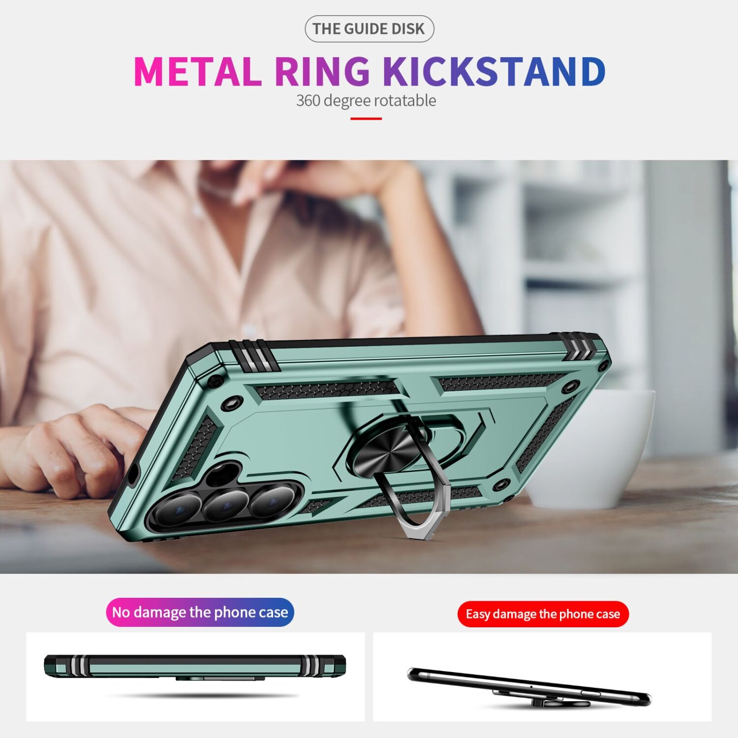 • Металлическое кольцо на спинке аксессуара выполняет роль держателя на палец и удобной откидной подставки;