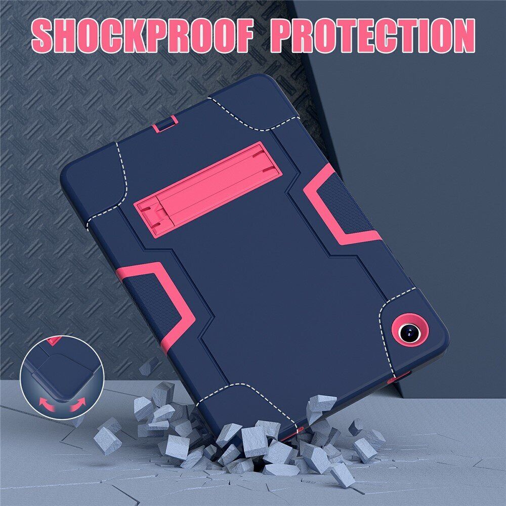 Deexe Color Kickstand – это настоящая броня для Samsung Galaxy Tab A11 Plus (X230/236), способная гарантировать высочайший уровень защиты от царапин, потёртостей, трещин и множества других механических повреждений. Конструкция чехла представляет собой комбинацию из прочной пластиковой основы, куда вставляется планшет, пластиковой рамки-фиксатора, а также силиконовой обложки, плотно их облегающей и выполняющей роль амортизатора. Внешняя поверхность приятна на ощупь, устойчива к загрязнению и не будет скользить в руках. Сзади на спинке можно найти специальную откидывающуюся подставку, при помощи которой можно удобно зафиксировать планшет на любой ровной поверхности, облегчая просмотр видео и чтение с экрана.