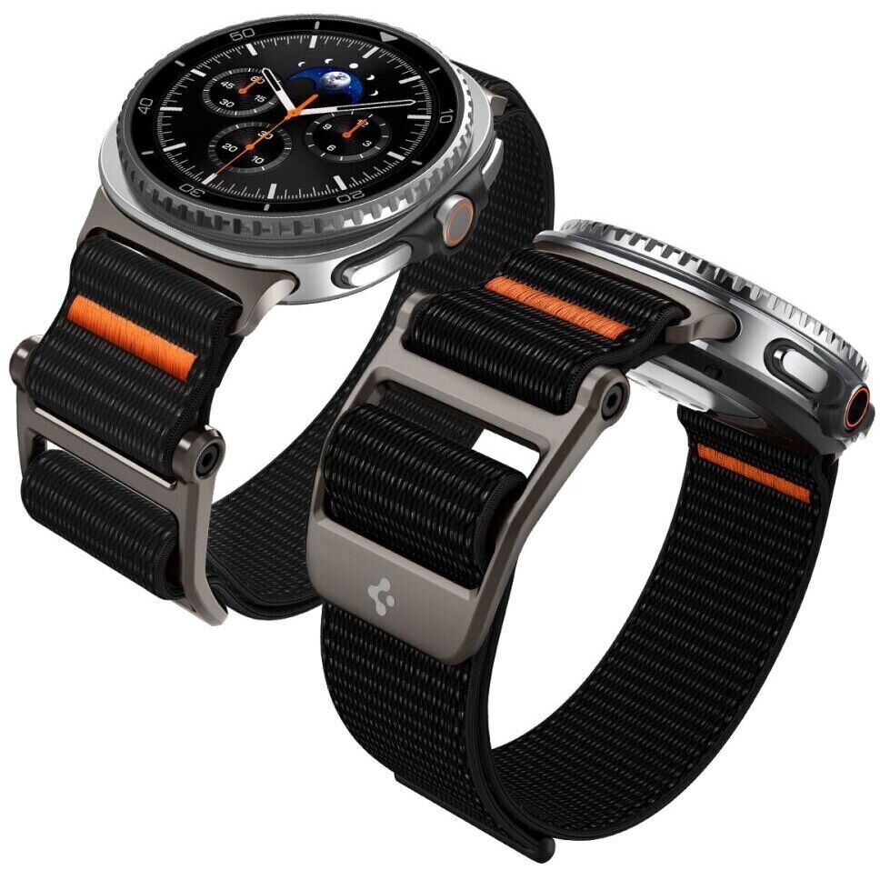 Ремешок Spigen (SGP) DuraPro Flex Ultra для Samsung Galaxy Watch 8 (40/44mm) / 8 Classic — это стильный и функциональный аксессуар, сочетающий прочность, комфорт и современный дизайн. Выполненный из высококачественного нейлона с яркой оранжевой декоративной строчкой, он отличается повышенной износостойкостью и приятной текстурой. Лёгкий, дышащий материал обеспечивает комфорт даже при длительном ношении, а надёжная застёжка на липучке гарантирует идеальную фиксацию на запястье. Металлическая пряжка из цинкового сплава придаёт ремешку изысканный акцент и повышает его долговечность. Благодаря регулируемой длине, Spigen DuraPro Flex Ultra подходит для большинства пользователей и идеально дополняет стильные часы Samsung Galaxy Watch 8.
