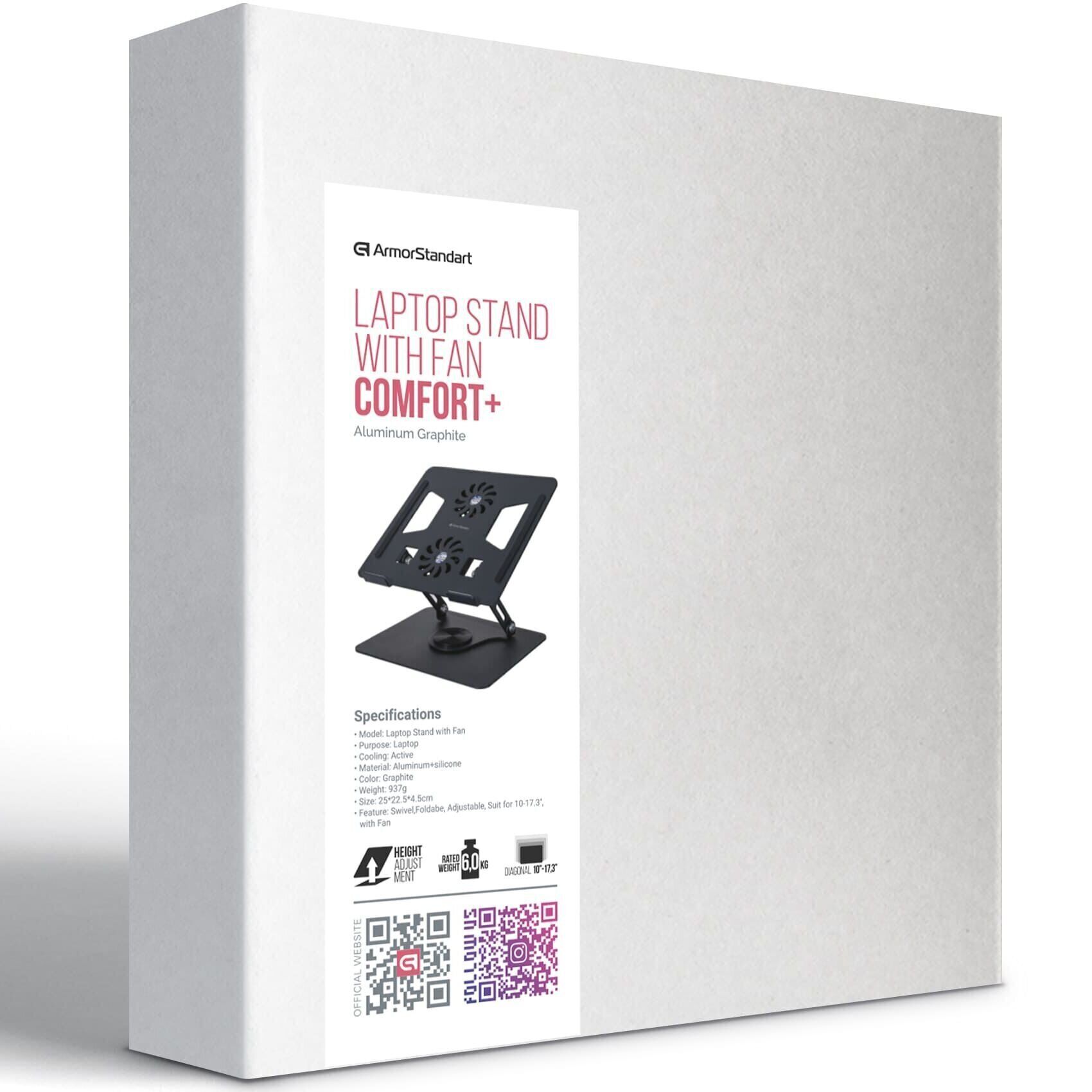 Охлаждающая подставка для ноутбука ArmorStandart Comfort+ H31 — это удобное и продуманное решение для тех, кто хочет повысить комфорт работы и защитить устройство от перегрева. Конструкция выполнена из прочного алюминия и дополнена силиконовыми вставками, которые обеспечивают устойчивость и надёжную фиксацию ноутбука. Подставка регулируется по высоте, позволяя поднять экран до уровня глаз и снизить нагрузку на спину и шею. Встроенный поворотный механизм помогает легко менять угол обзора, а усиленная конструкция делает модель подходящей для разных условий — дома, в офисе или в поездках. Встроенные вентиляторы эффективно охлаждают устройство, повышая его производительность и долговечность.
