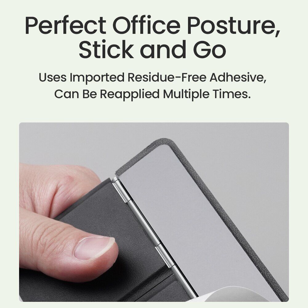 - Клеевая основа обеспечивает надёжное крепление к поверхности ноутбука, позволяя легко зафиксировать подставку и при необходимости аккуратно снять её без следов или повреждений;