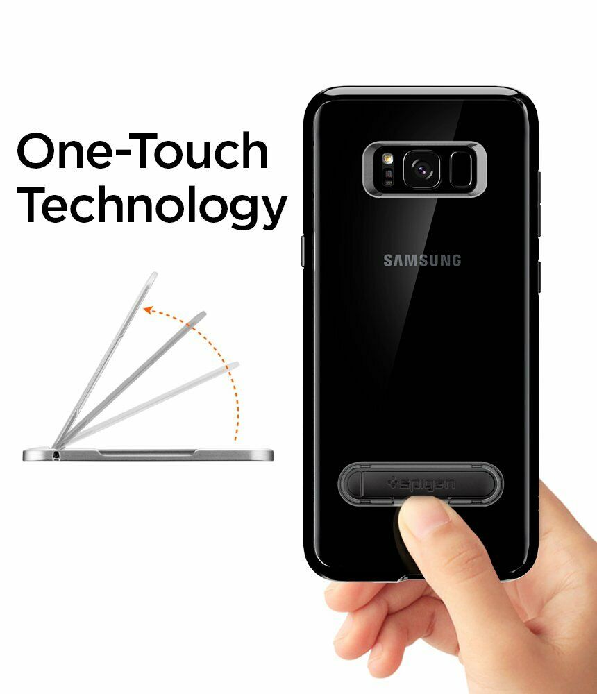Чохол-накладка Spigen (SGP) Ultra Hybrid S майже повністю прозорий і тому мінімально приховує оригінальний дизайн вашого Samsung Galaxy S8 (G950), при цьому забезпечуючи гідний захист корпусу від бруду та пошкоджень. Його конструкція складається з двох елементів: міцної полікарбонатної (PC) основи та еластичного силіконового (TPU) канта по периметру, хороші амортизаційні якості якого дозволяють "гасити" удари в разі падіння на підлогу. Для камери та роз'ємів смартфона передбачені спеціальні вирізи, тоді як клавіші прикриваються м'якими дублікаторами, що оберігають ті від забивання брудом. Як приємне доповнення - на спинці чохла є спеціальна металева ніжка, відкинувши яку, його можна перетворити в зручну підставку для перегляду відео.