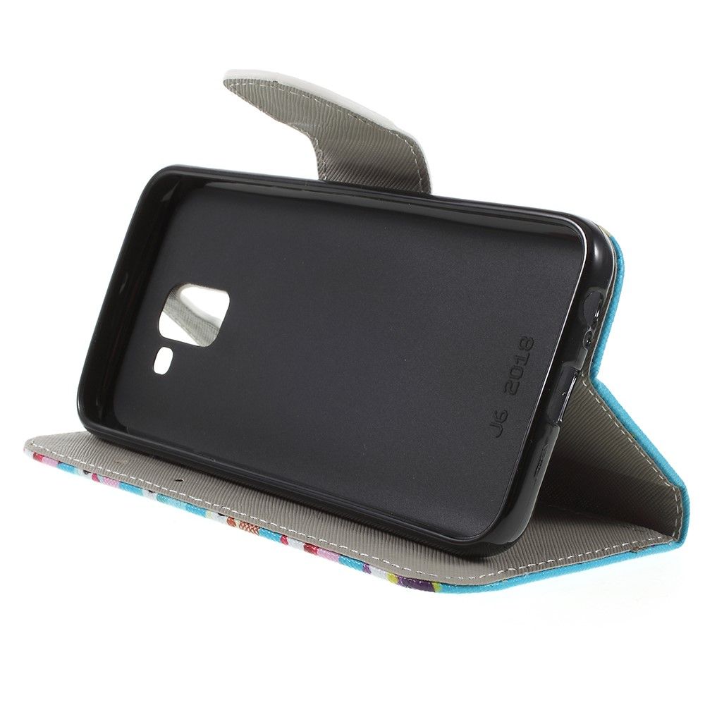 Чохол-книжка Deexe Color Wallet для Samsung Galaxy J6 2018 (J600) відрізняється яскравим екстравагантним дизайном, якістю виконання і високою практичністю конструкції. Основним матеріалом тут виступає текстурований поліуретан, фактура якого не зберігає відбитки пальців і не ковзає в руках. Тримач виконаний зі щільного силікону (TPU), що добре фіксує смартфон всередині, а при падінні на підлогу може істотно пом'якшити силу удару, запобігаючи появі тріщин.