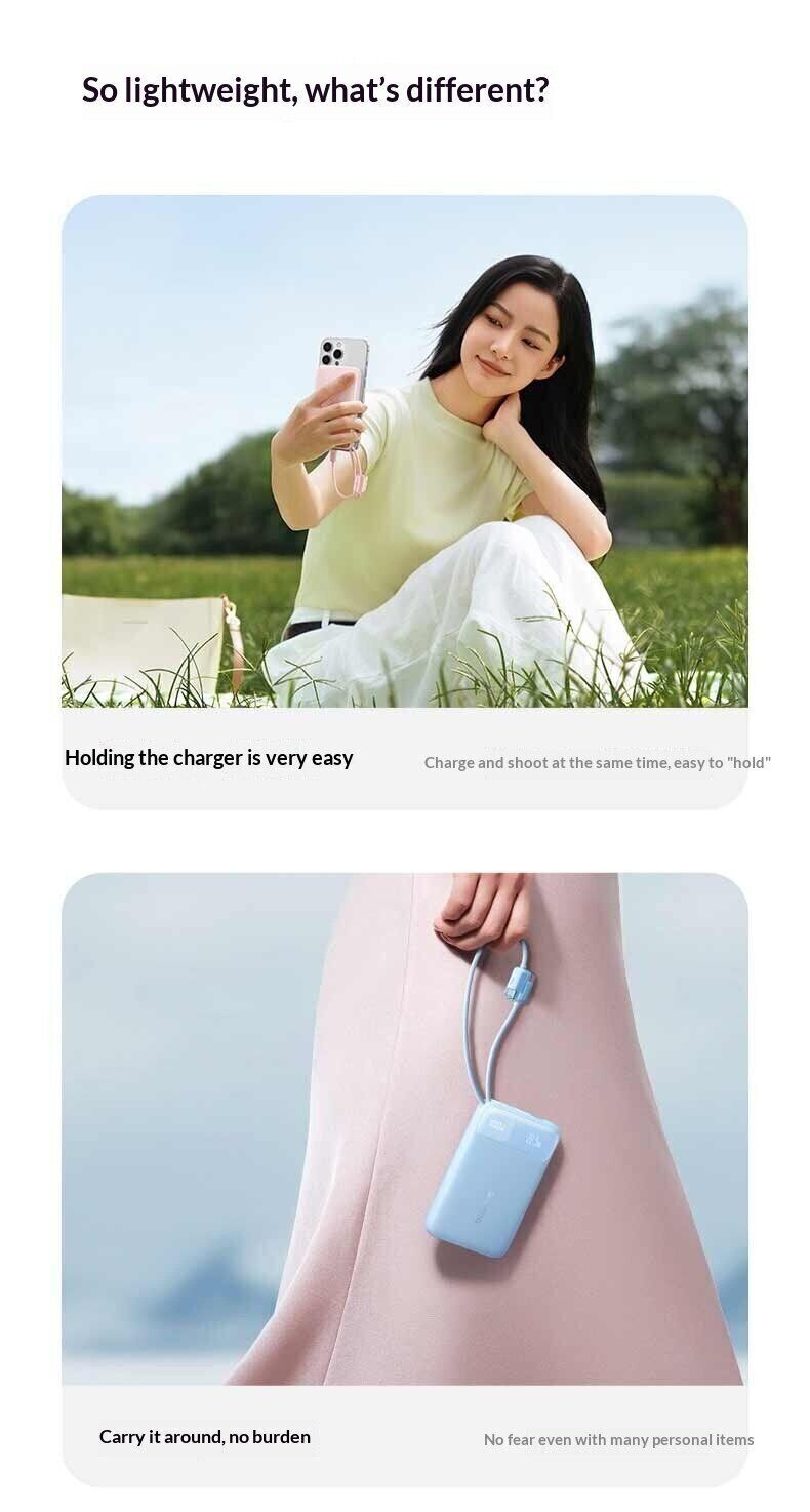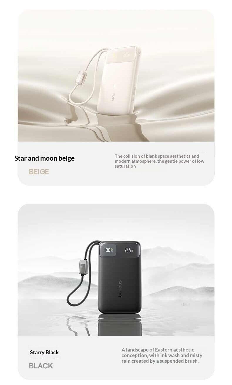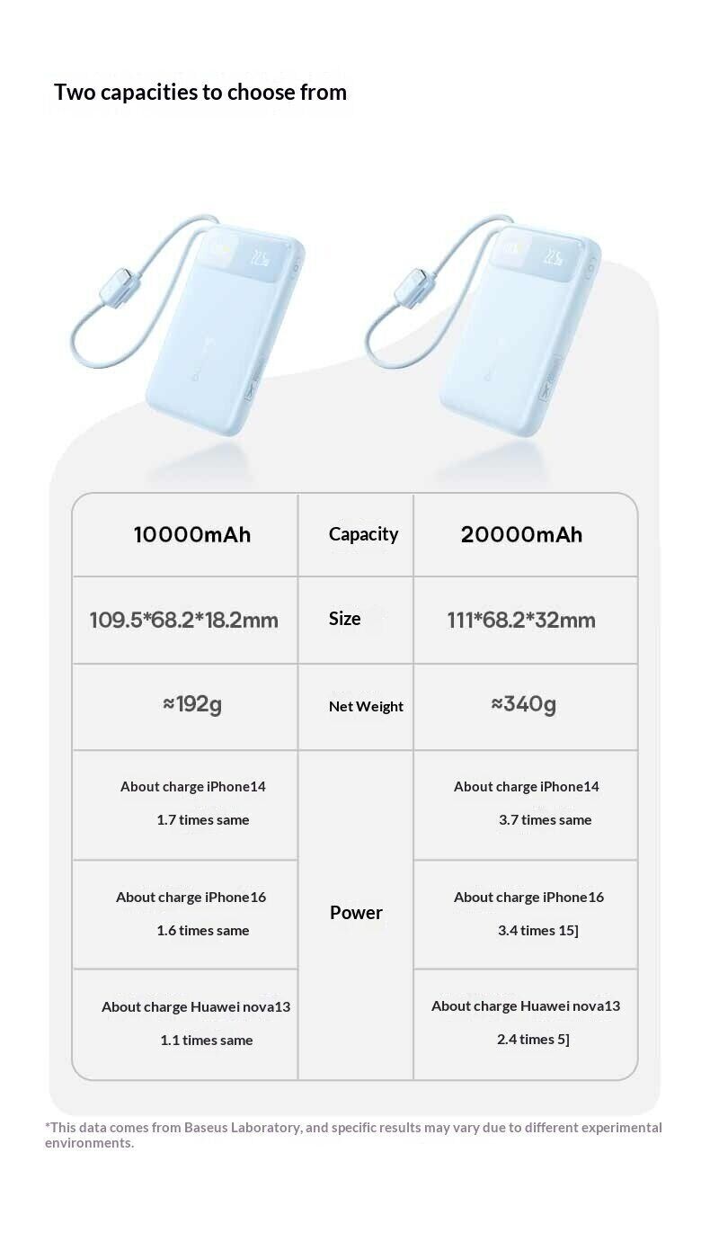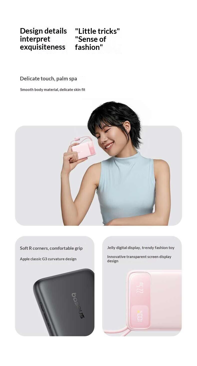 Зовнішній акумулятор Baseus EnerFill FC11 22,5 Вт (20000 мА·год) — це універсальне джерело живлення для щоденного використання, подорожей та роботи поза домом. Ємність 20000 мАг дозволяє багаторазово заряджати смартфони, планшети та інші пристрої, забезпечуючи тривалу автономність без доступу до розетки. Модель оснащена вбудованими кабелями USB-C і Lightning з міцним обплетенням, що позбавляє від необхідності носити додаткові дроти та спрощує використання. Підтримка швидкої зарядки до 22,5 Вт допомагає скоротити час поповнення енергії, а функція двосторонньої зарядки прискорює заряд самого акумулятора. Цифровий дисплей відображає рівень заряду у відсотках, дозволяючи точно контролювати залишок енергії. Компактний корпус робить пристрій зручним для перенесення, а вбудована система захисту забезпечує безпечну роботу.