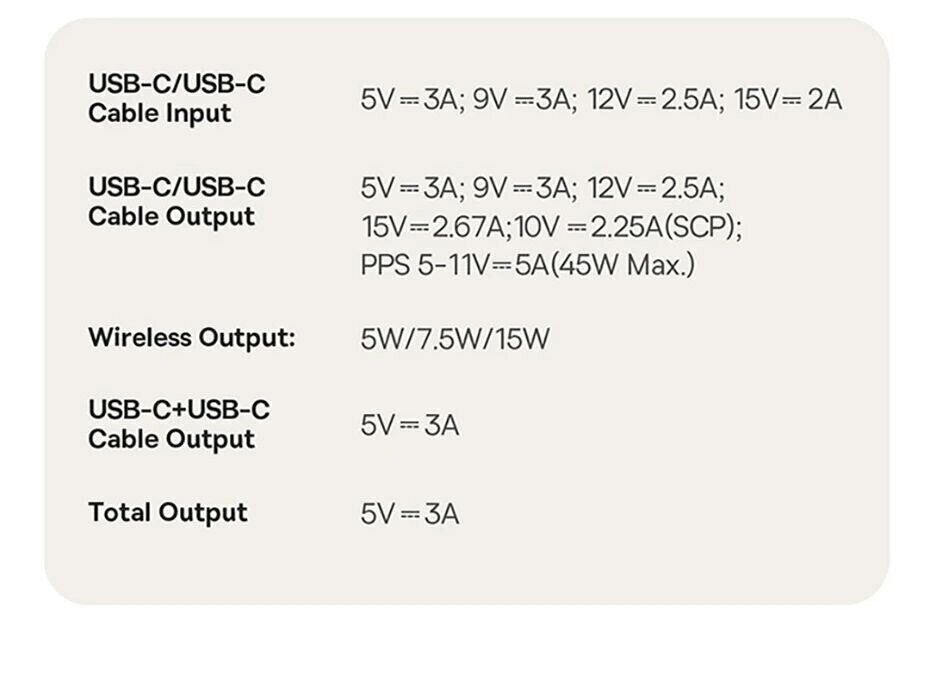 - Роз'єм USB Type-C і вбудований кабель Type-C можна використовувати і для зарядки самого павербанка;