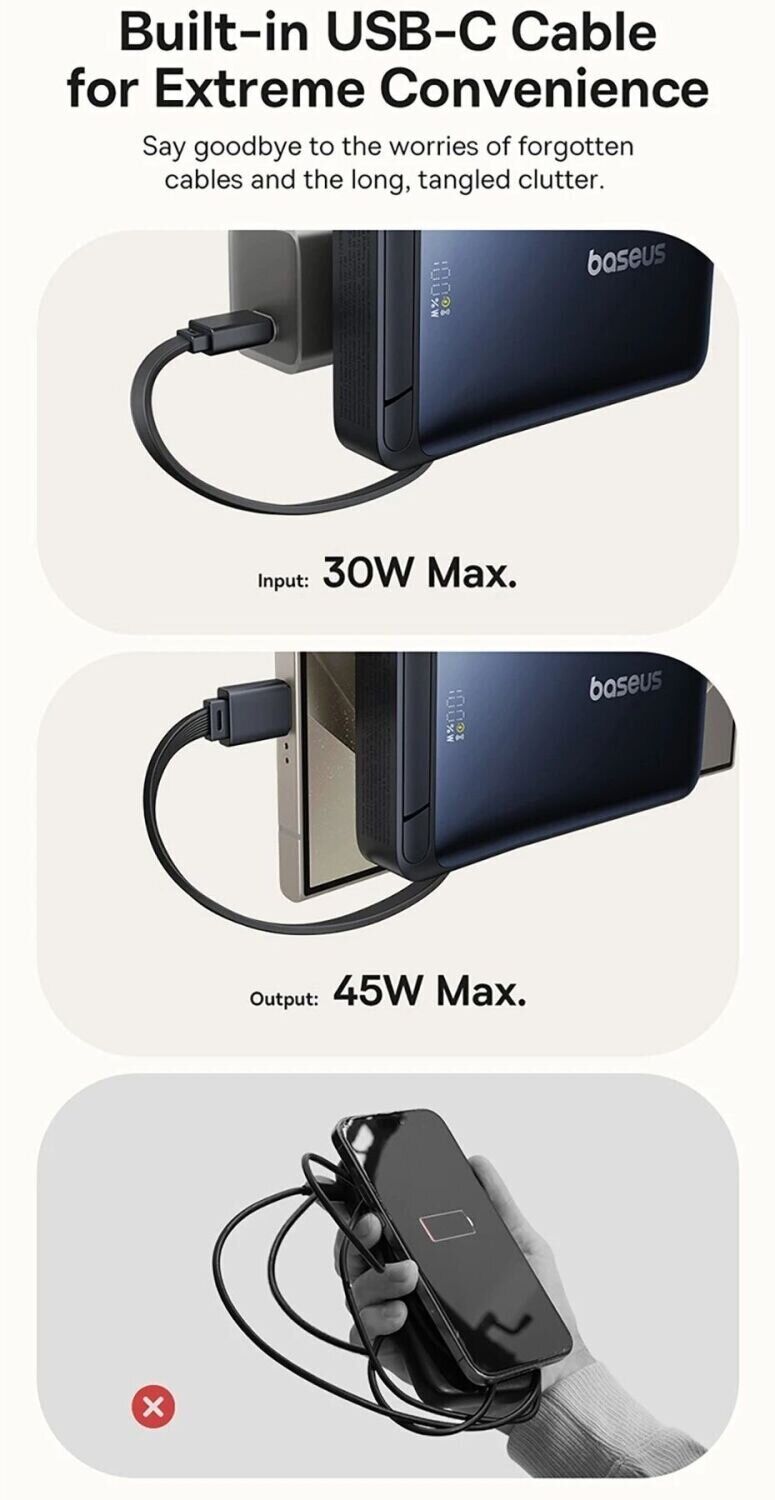 Особливості зовнішнього акумулятора Baseus Nomos Qi2 45W (10000mAh) + кабель Type-C (P10078800123-00):
