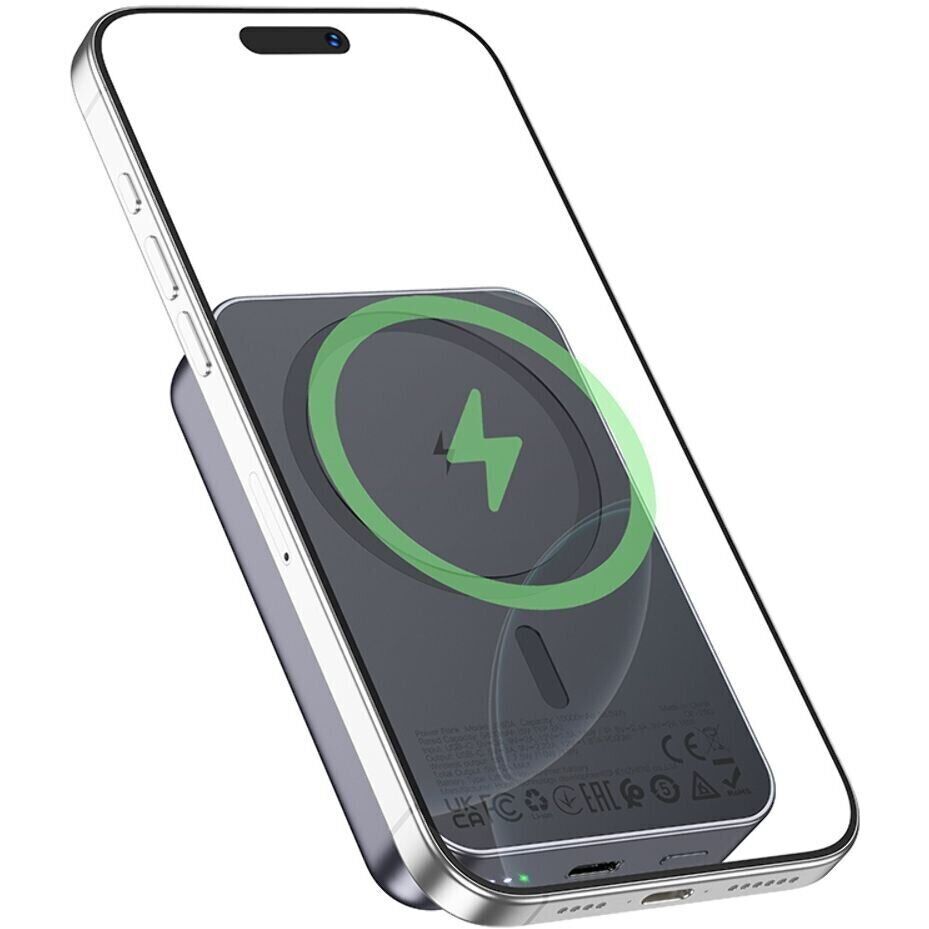 Зовнішній акумулятор Hoco J160A PD20W (10000mAh) — магнітний power bank з підтримкою швидкої та бездротової зарядки, розрахований на щоденне використання, поїздки та роботу поза домом. Ємності 10 000 мА·год достатньо, щоб впевнено підтримувати заряд смартфона та інших пристроїв протягом дня. Модель підтримує швидку зарядку через USB-C потужністю до 20 Вт (PD/QC/FCC/AFC), а також бездротову зарядку в режимах 5 / 7,5 / 10 / 15 Вт. Зарядка самого акумулятора можлива через USB-C або Lightning з вхідною потужністю до 18 Вт, тому його зручно підключати до сучасних адаптерів. Для контролю передбачений LED-індикатор рівня заряду, а вогнестійкий полікарбонатний корпус і літій-полімерна батарея забезпечують надійність і безпечну експлуатацію.