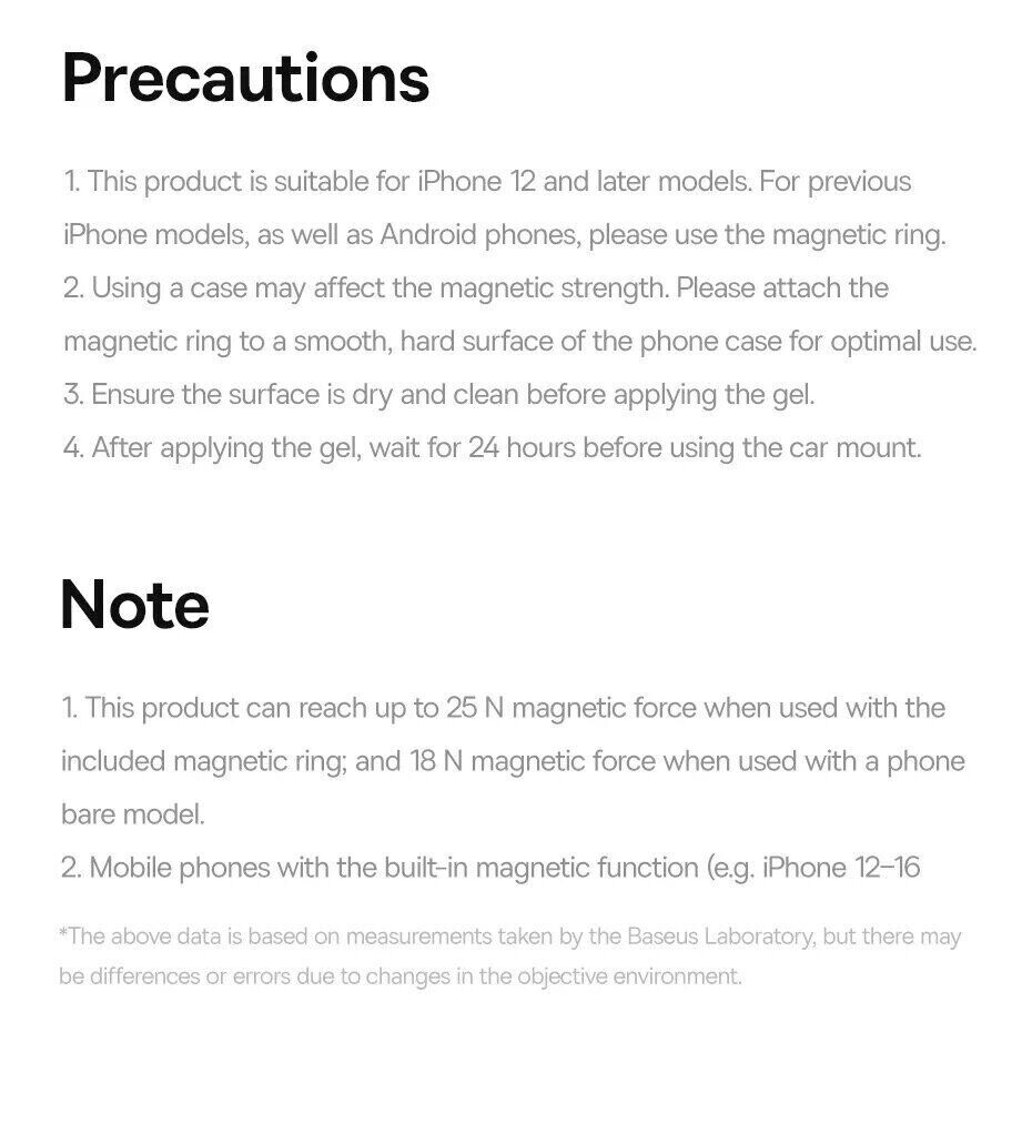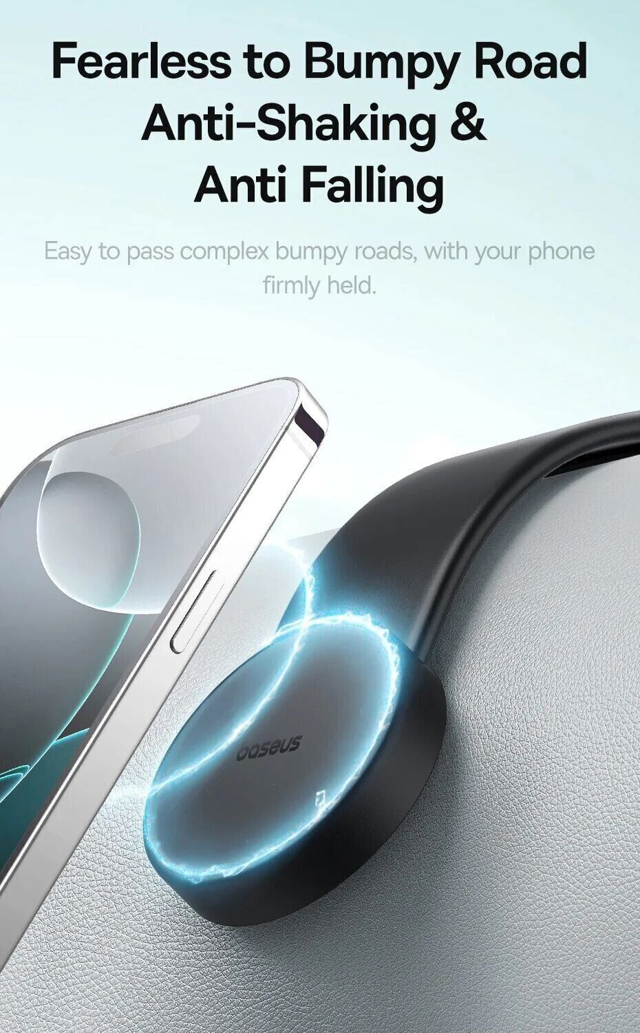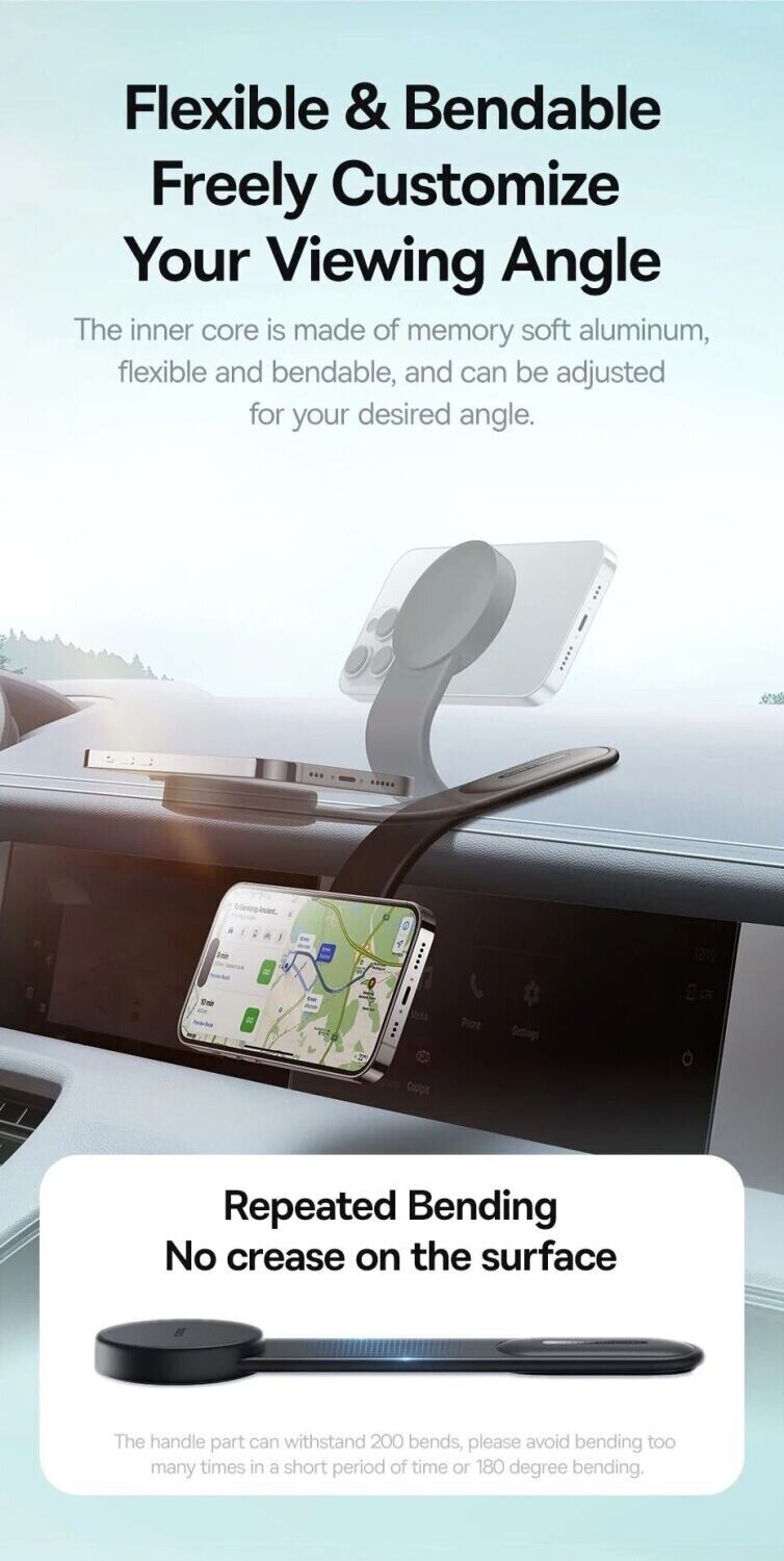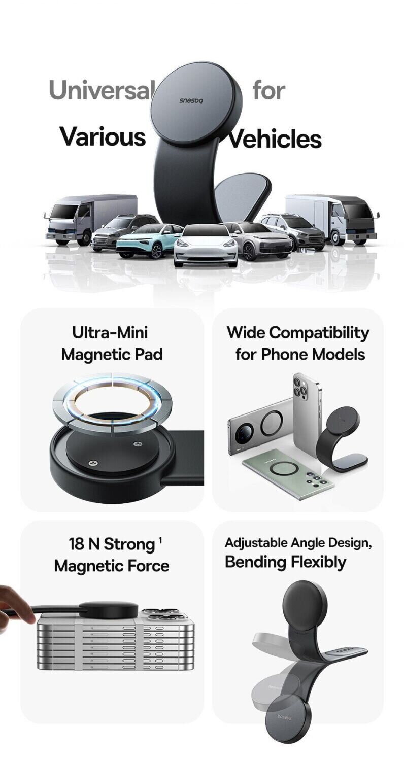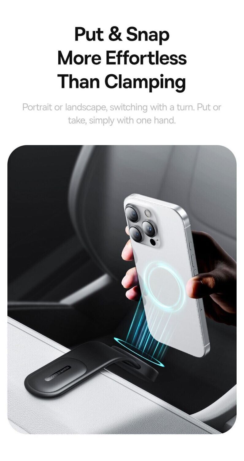 - Сильне магнітне тяжіння 18 N (до 25 N з магнітним кільцем) утримує телефон стійко, виключаючи ризик падіння навіть при трясці або різких поворотах;