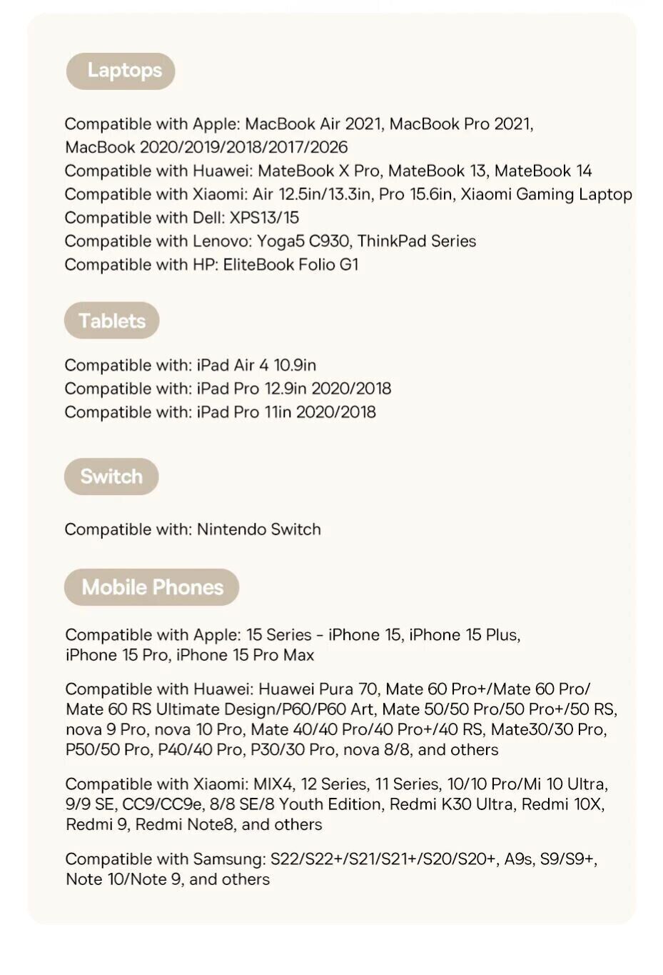 • Максимальна потужність 100 Вт з підтримкою технології Power Delivery, що забезпечує швидке заряджання сумісних пристроїв;