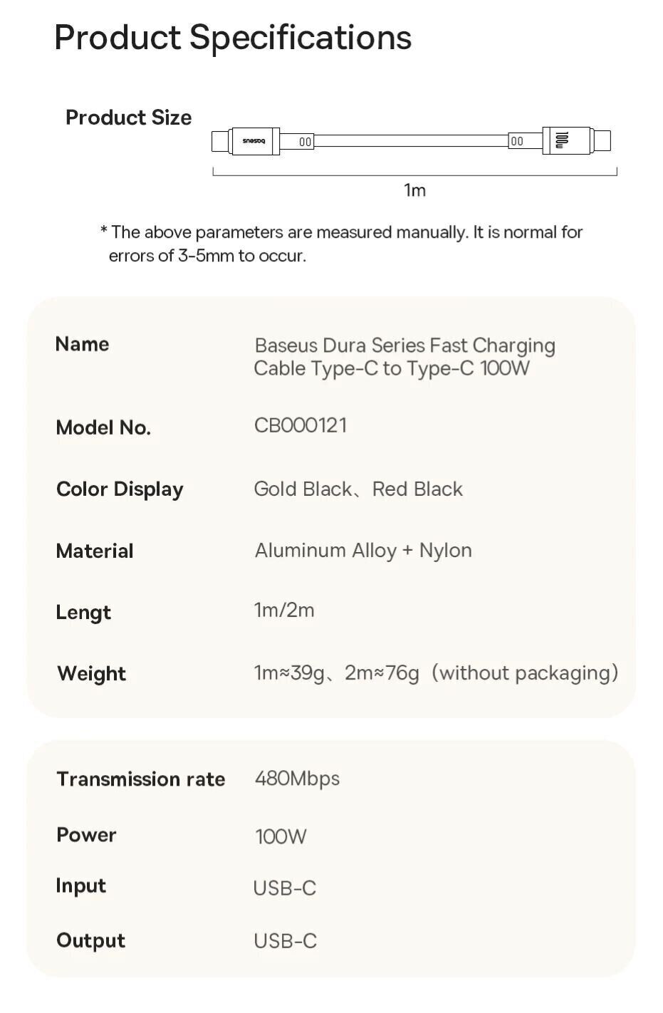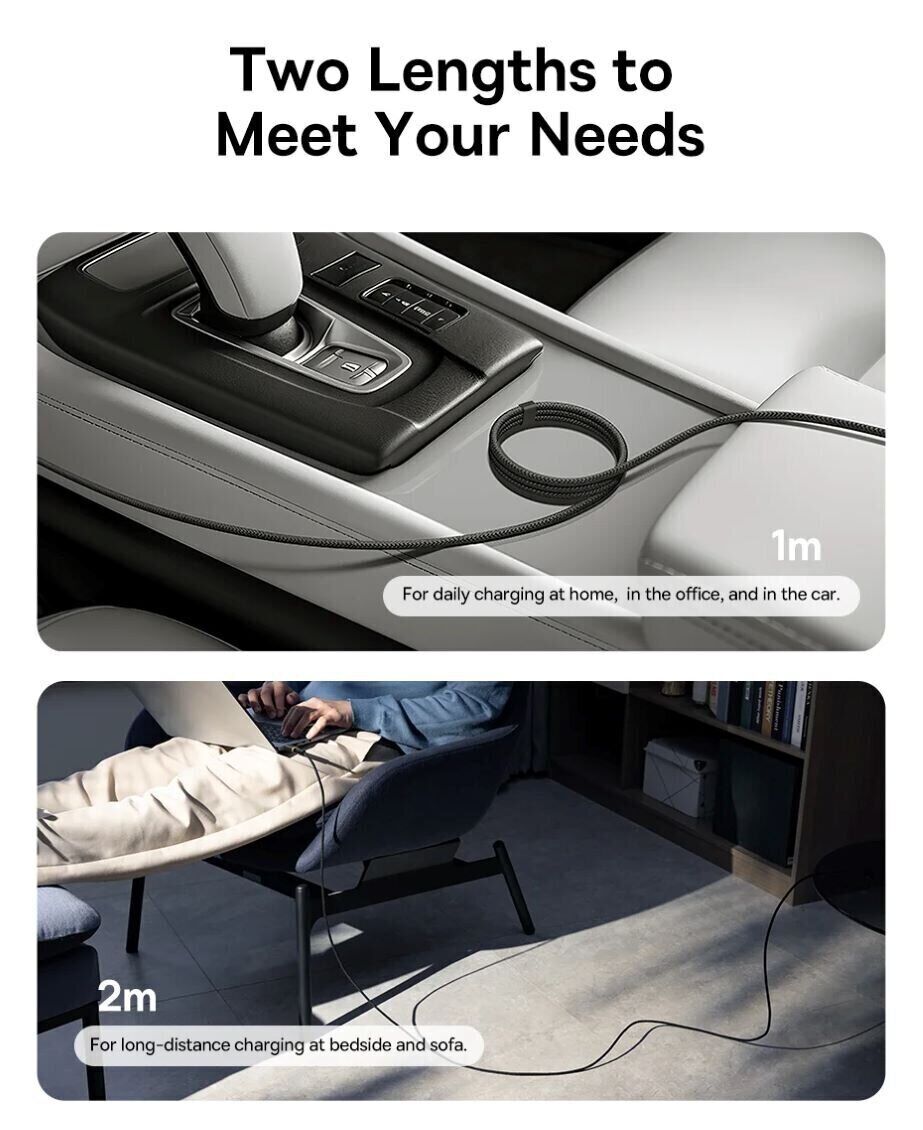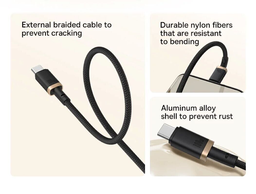 Особливості кабелю Baseus Dura Series Type-C to Type-C (100W, 1m):
