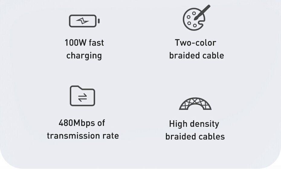 Особливості кабелю Baseus Dynamic Series Type-C to Type-C (100W, 1m) CALD000216: