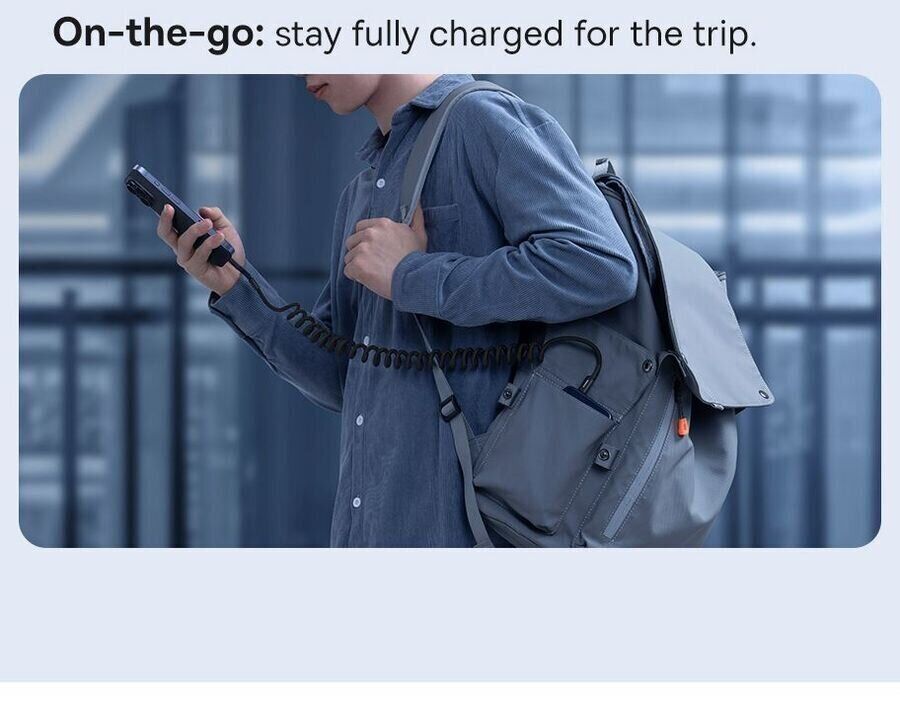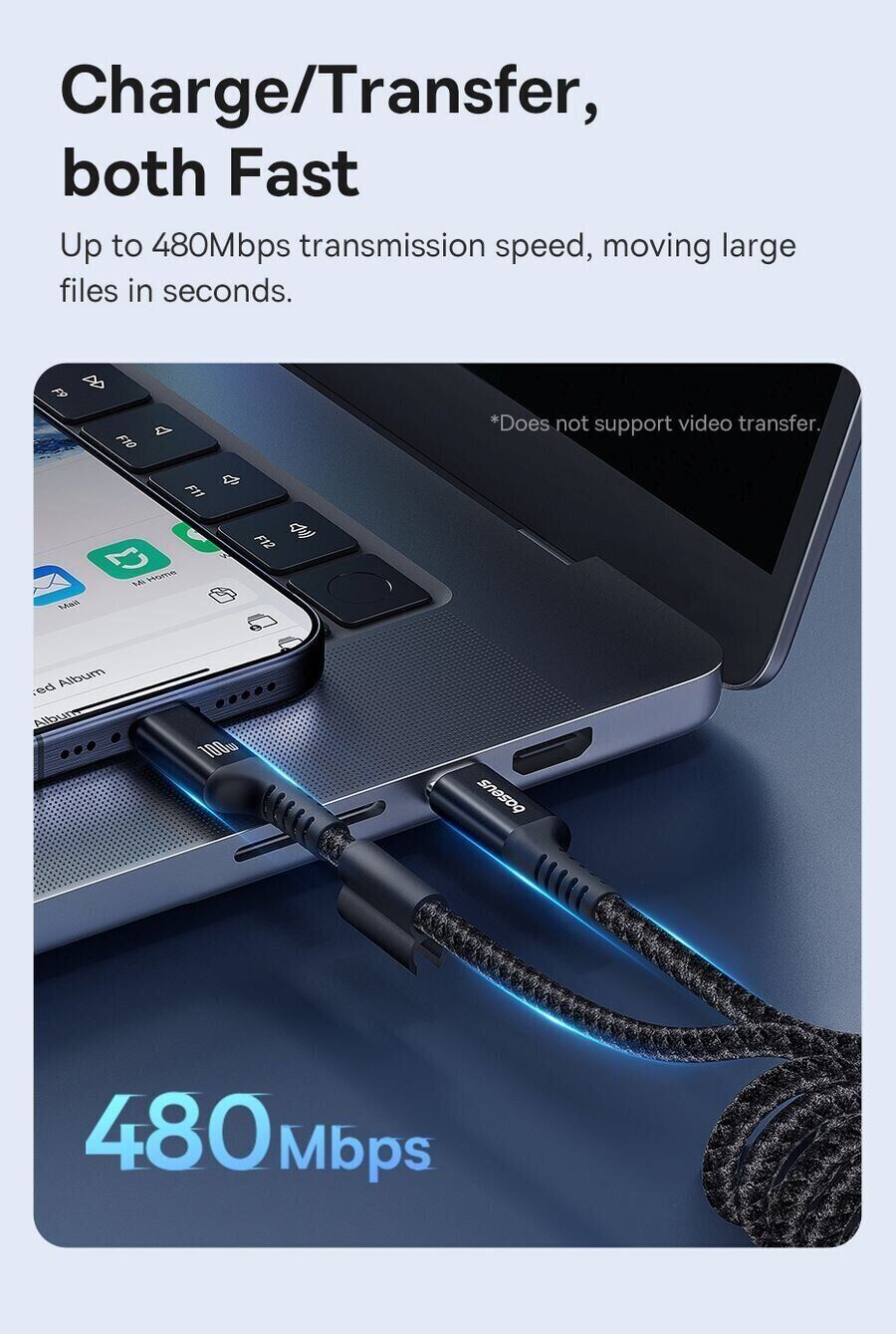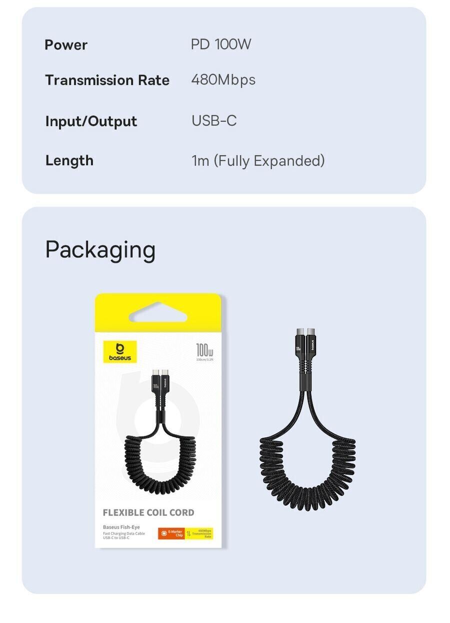 Кабель Baseus Fish-Eye Type-C to Type-C (100W, 1m) P10320203111-00 - це практичне рішення для заряджання й передавання даних, розроблене з урахуванням повсякденних завдань користувачів. Завдяки спіральній формі кабель не плутається і легко розтягується до потрібної довжини, забезпечуючи комфорт під час використання в автомобілі, вдома або офісі. Він підтримує швидке заряджання потужністю до 100 Вт, що дає змогу заряджати сучасні пристрої, включно з ноутбуками, планшетами та смартфонами, за короткий час. Надійна конструкція та вбудований чип E-Marker гарантують безпечне передавання енергії, запобігаючи перегріванню та перевантаженню. Довжина до 1,8 м дає змогу легко дотягнутися до заднього сидіння автомобіля або використовувати кабель на робочому столі без обмежень. Кабель підходить для пристроїв із роз'ємом Type-C і забезпечує стабільну передачу даних на швидкості до 480 Мбіт/с.