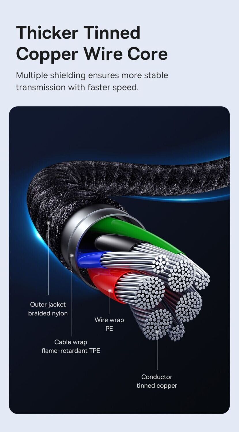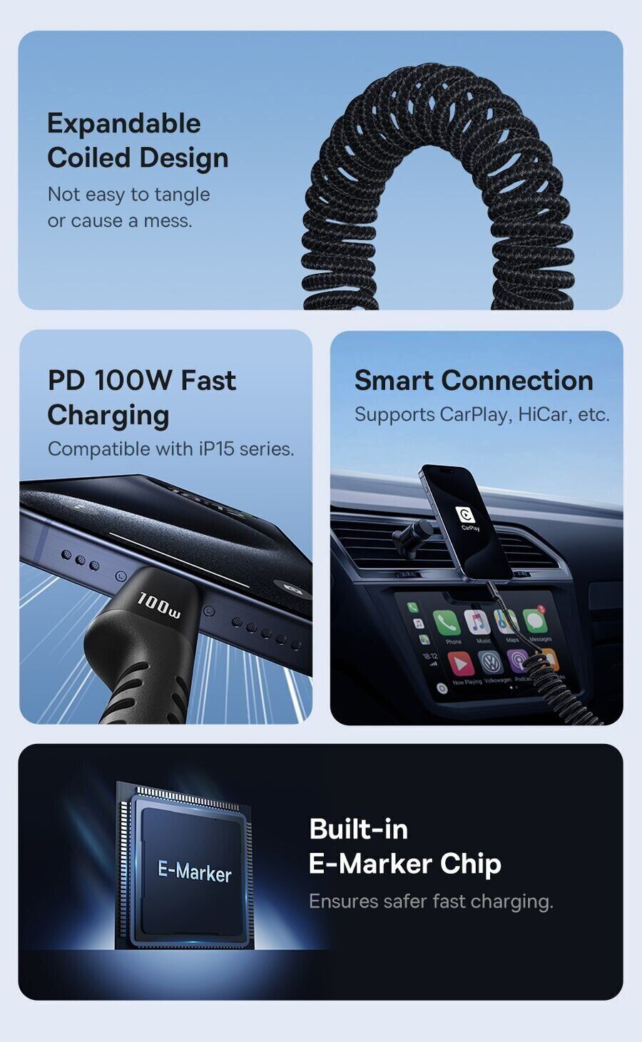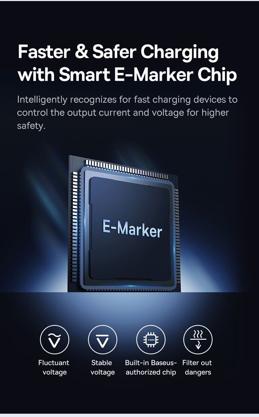 - Оснащений вбудованим чипом E-Marker для безпечної та стабільної зарядки;