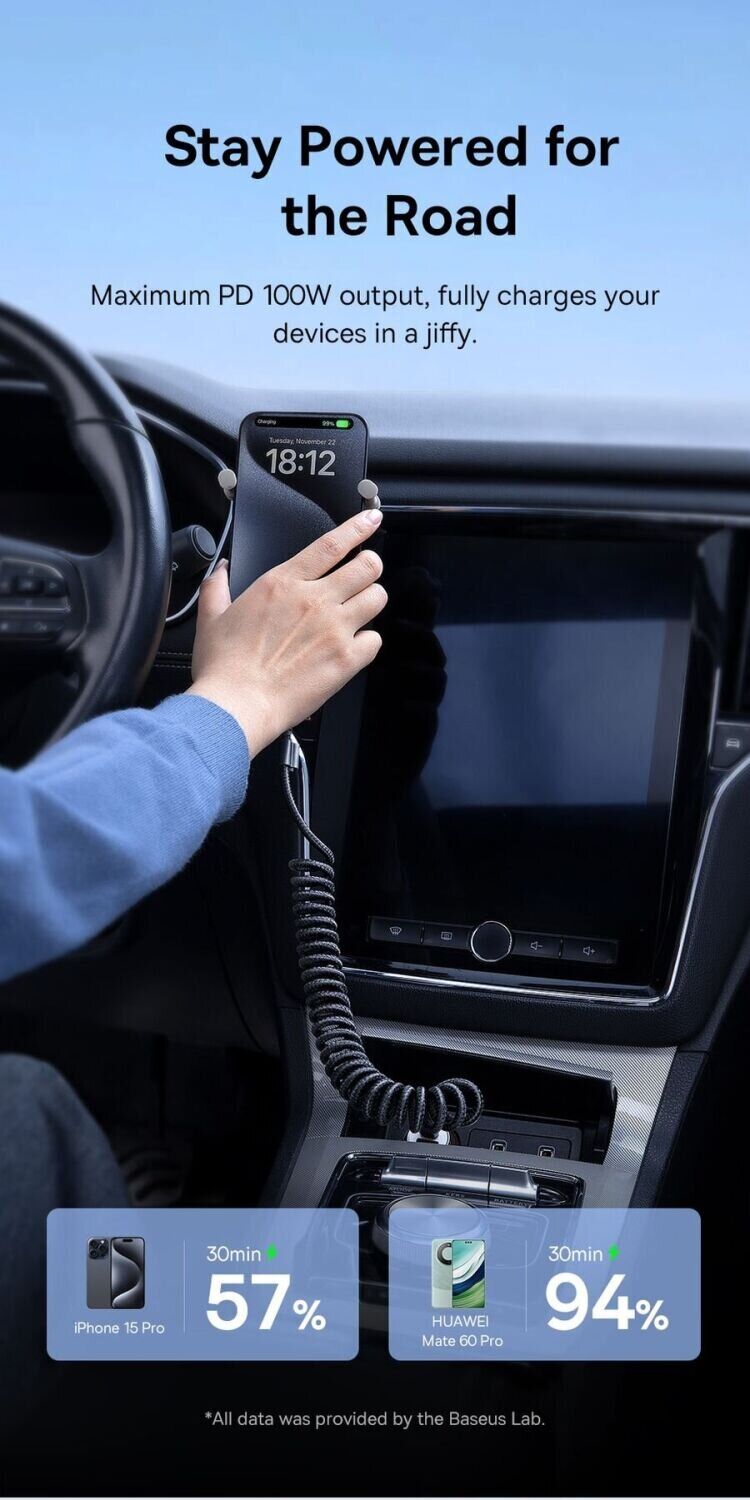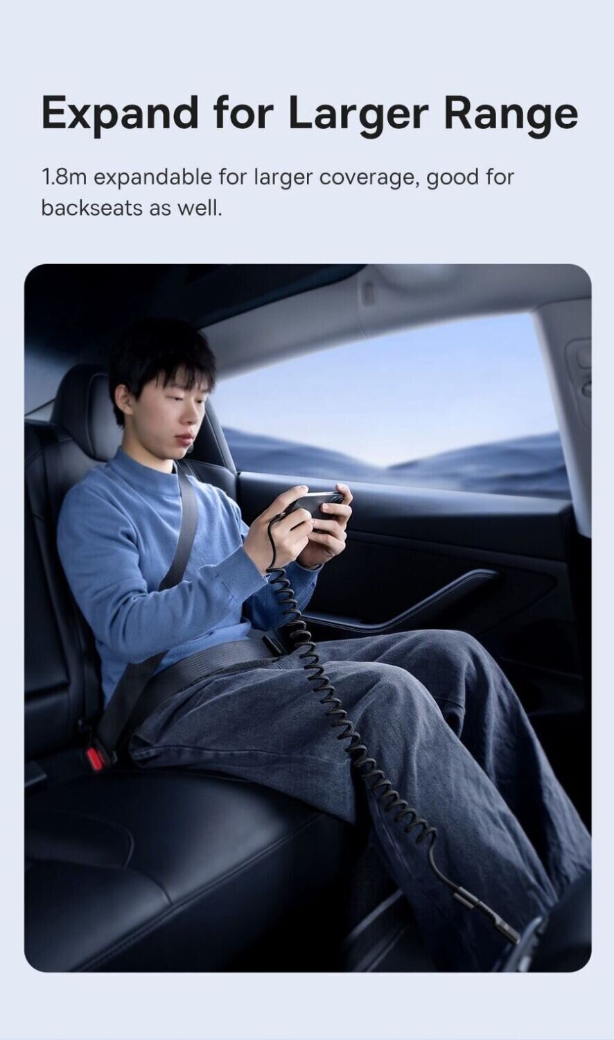 - Розтягується до 1,8 м, зручно використовувати в автомобілі або з віддаленими розетками;