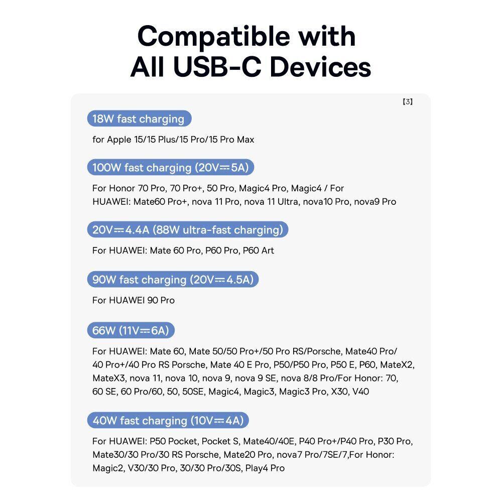 - Підтримує потужність до 100 Вт, забезпечуючи швидку зарядку навіть для ноутбуків і планшетів;