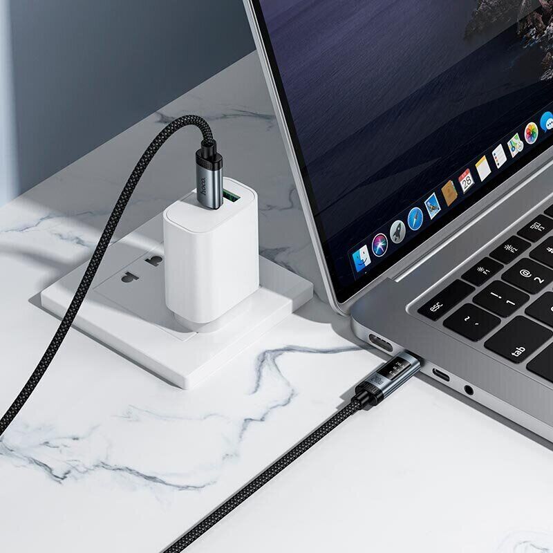 Кабель Hoco U148 Type-C to Type-C (240W, 5A, 1.2m) — продумане рішення для швидкої та безпечної зарядки смартфонів, планшетів, ноутбуків та іншої техніки з роз'ємом Type-C. Модель орієнтована на високу потужність і стабільну передачу енергії, а також на зручний контроль параметрів під час заряджання. Кабель підтримує Power Delivery 3.1 і розрахований на потужність до 240 Вт, тому підходить для енергоємних пристроїв і сучасних адаптерів. Плетена нейлонова оболонка і елементи з алюмінію захищають кабель від зносу, перегинів і пошкоджень при щоденному використанні. Багатожильна конструкція зі збільшеним діаметром допомагає передавати струм рівно, без зайвих втрат і перегріву. Вбудований OLED-дисплей відображає потужність, напругу і силу струму в реальному часі, дозволяючи наочно контролювати процес зарядки. Довжина 1,2 м робить кабель зручним для дому, офісу і поїздок.