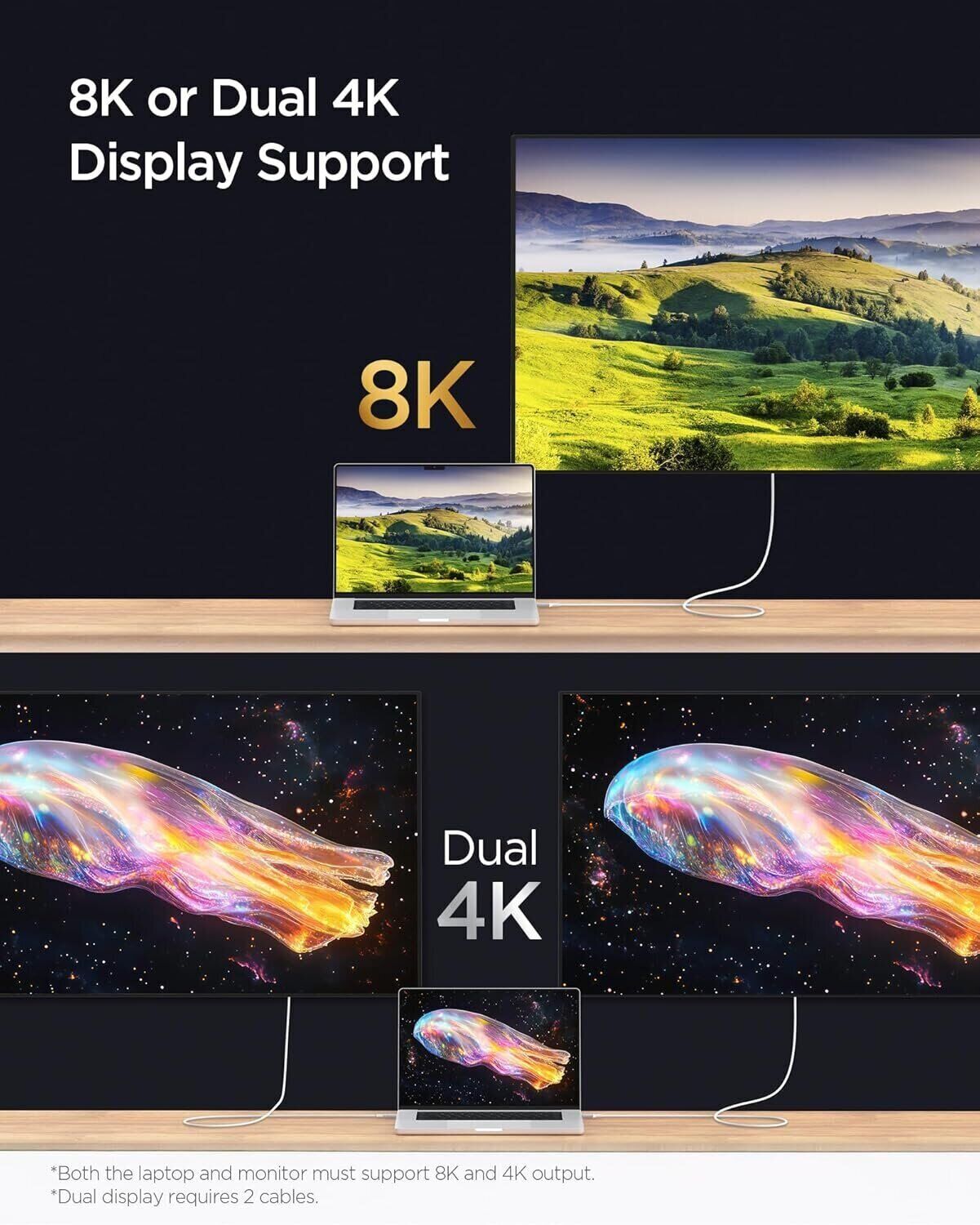 - Підключення дисплеїв і виведення зображення до 8K одним кабелем;